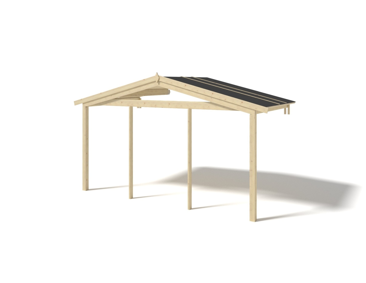 El alero ofrecido es perfecto como cobertura contra el sol abrasador, la lluvia, la nieve, el granizo u otras precipitaciones, con ancho frontal de 4 m y profundidad de 3 m (superficie: 12 m2). El alero es compatible con las casetas de jardín de madera, con un techo a dos aguas y un ancho frontal de 4 m, de espesor de 40 mm ofrecidas en nuestra tienda.