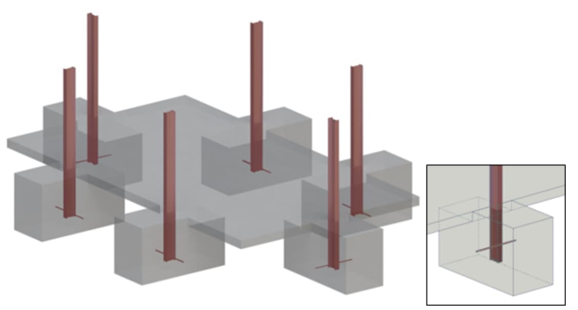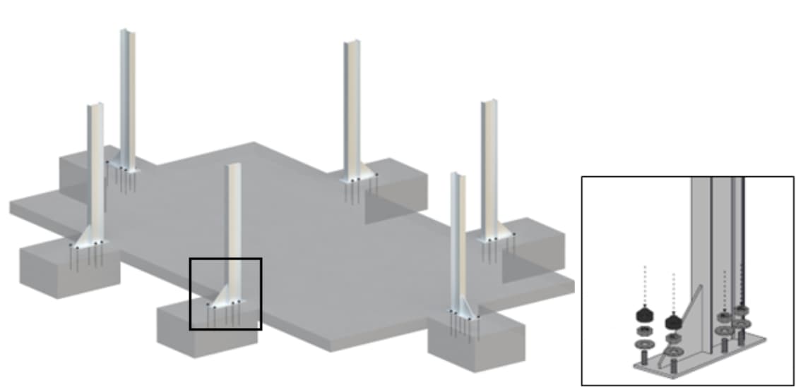 Los soportes metálicos se fijan químicamente a una losa de hormigón armado ya existente.