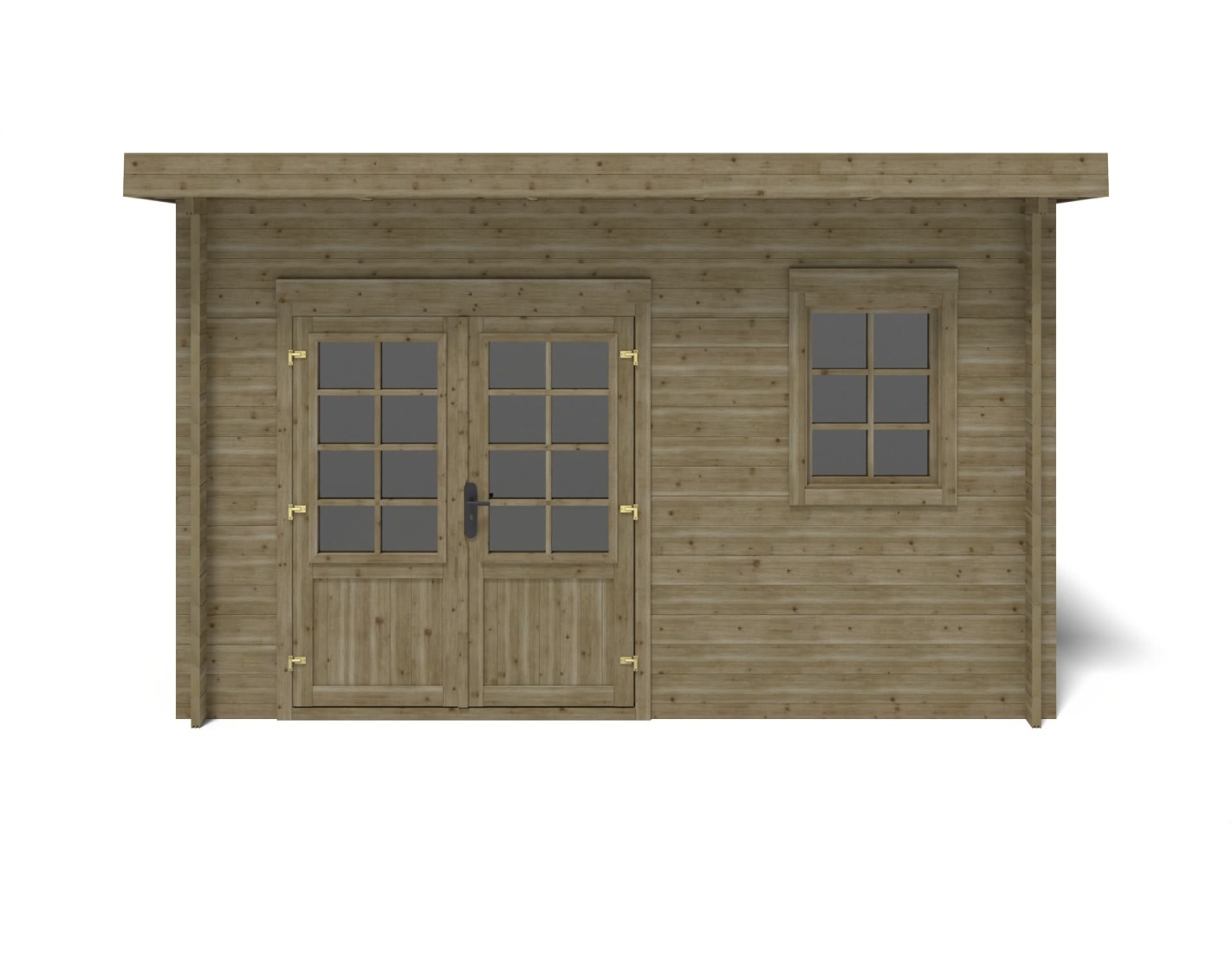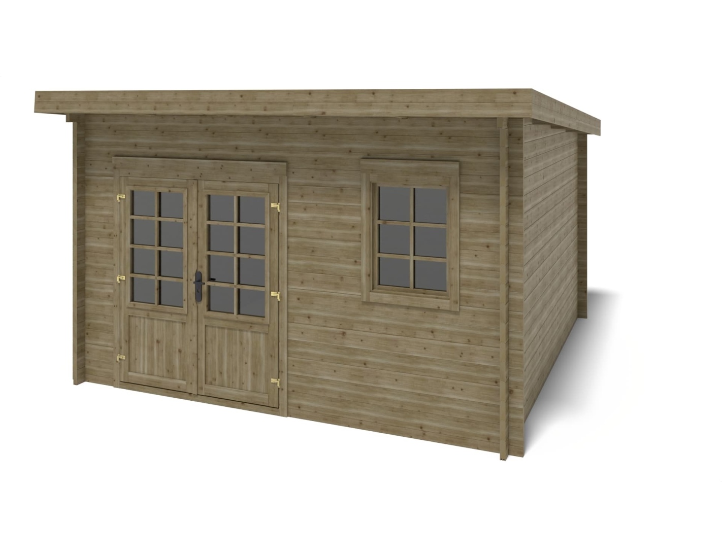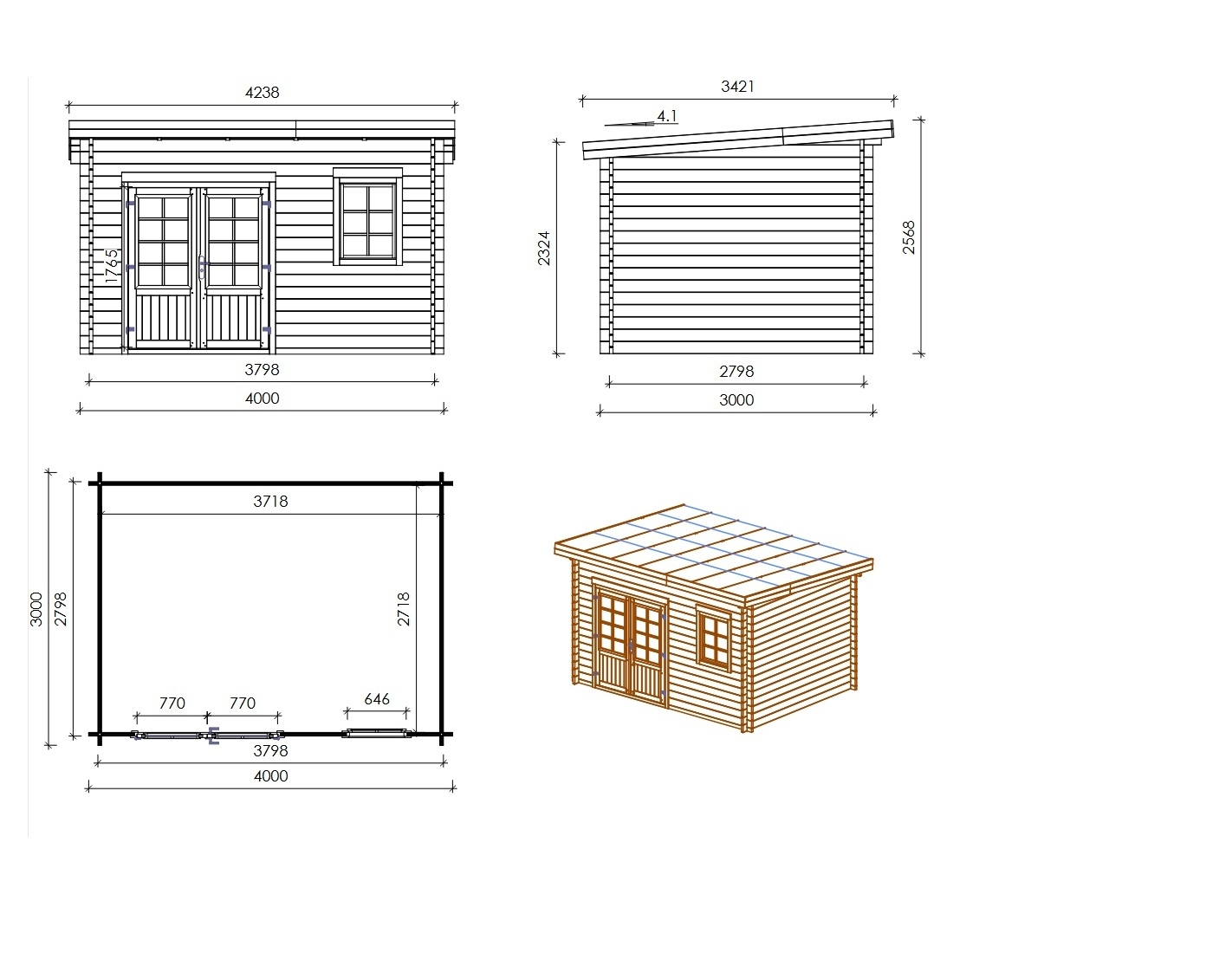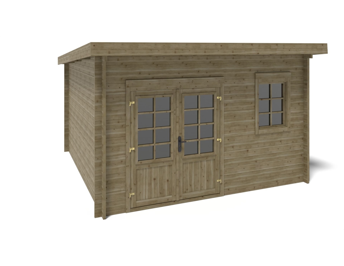 Caseta de madera para herramientas DOM717 de superficie de 12 m2, ancho de 4 m, profundidad de 3 m y espesor de pared de 40 mm. La caseta es fácil de montar, las instrucciones de montaje están incluidas.