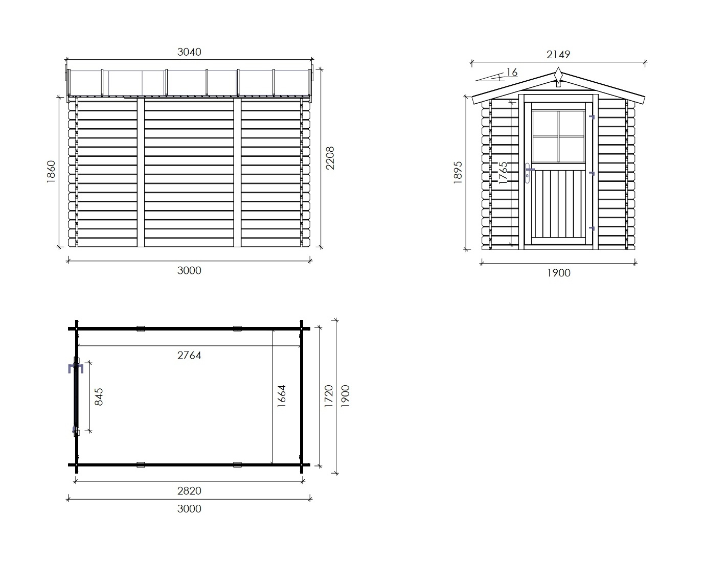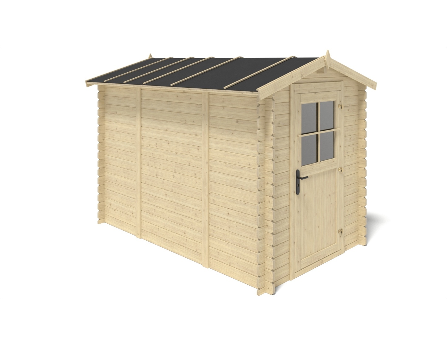 Caseta de madera para herramientas DOM662 de superficie de 5.7 m2, ancho de 1.9 m, profundidad de 3 m y espesor de pared de 28 mm. La caseta es fácil de montar, las instrucciones de montaje están incluidas.