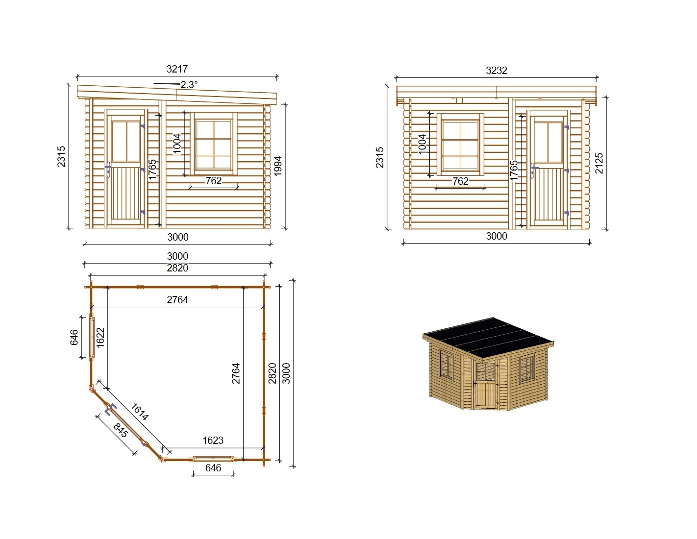 Caseta de madera para herramientas DOM665 de superficie de 8 m2, ancho de 3 m, profundidad de 3 m y espesor de pared de 28 mm. La caseta es fácil de montar, las instrucciones de montaje están incluidas.