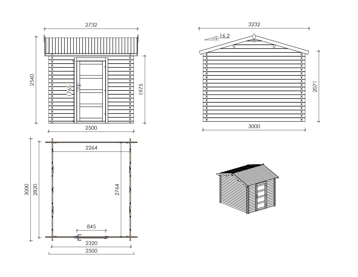 Caseta de madera para herramientas DOM675 de superficie de 7.5 m2, ancho de 2.5 m, profundidad de 3 m y espesor de pared de 28 mm. La caseta es fácil de montar, las instrucciones de montaje están incluidas.