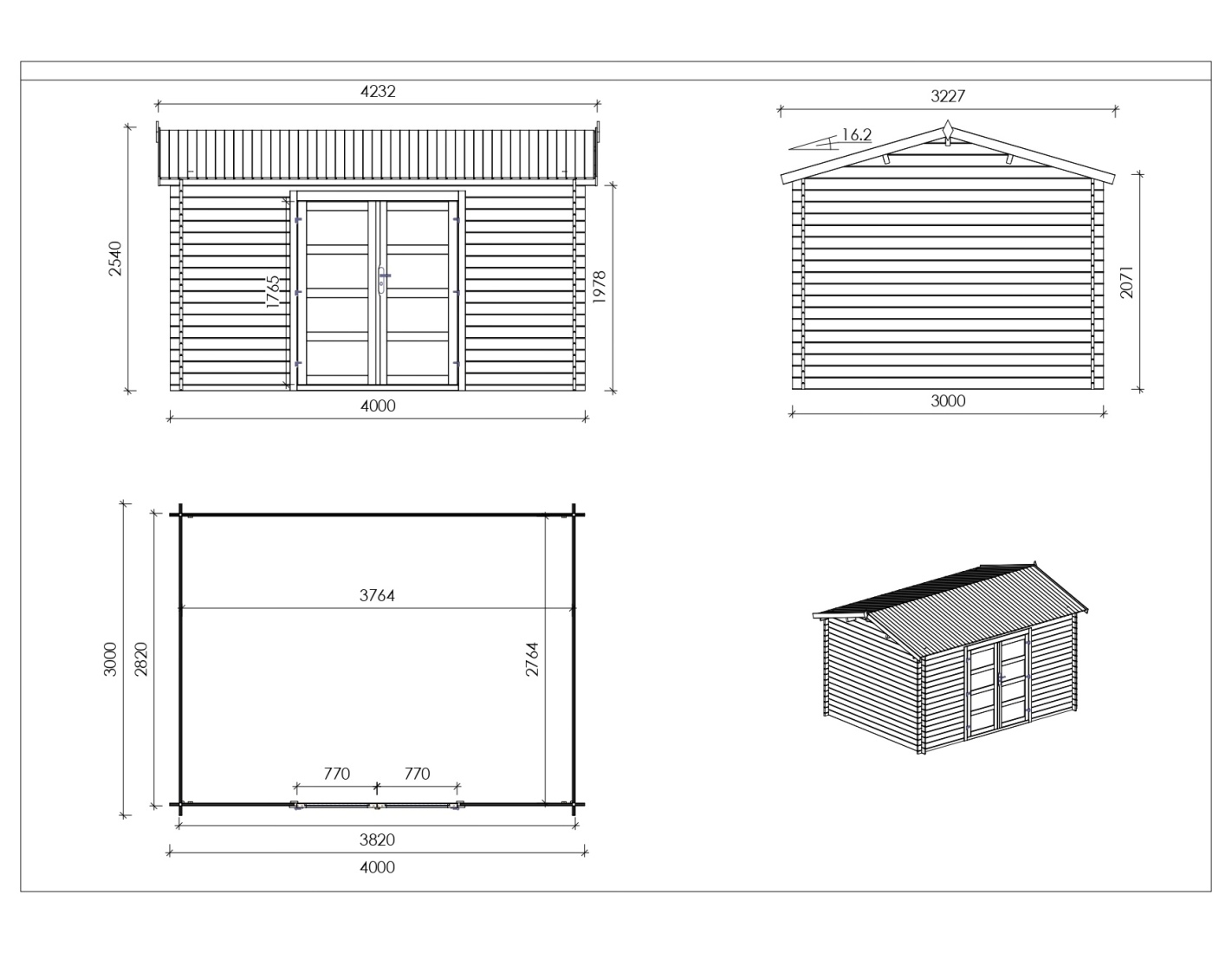 Caseta de madera para herramientas DOM677 de superficie de 12 m2, ancho de 4 m, profundidad de 3 m y espesor de pared de 28 mm. La caseta es fácil de montar, las instrucciones de montaje están incluidas.
