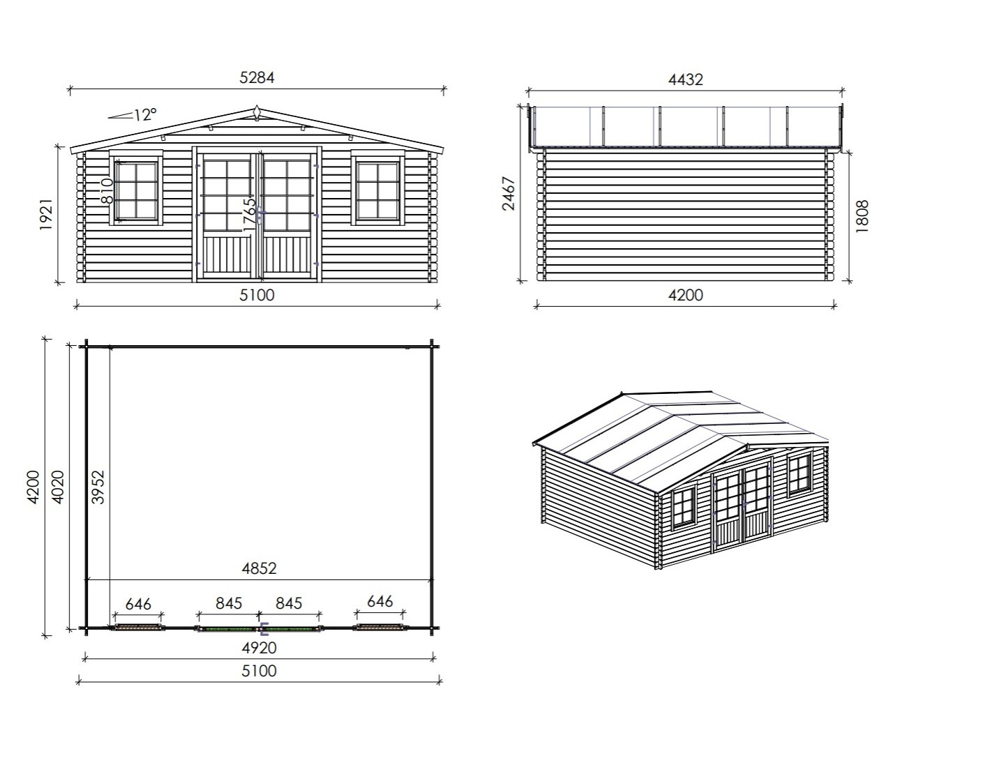 Caseta de madera para herramientas DOM746 de superficie de 21.42 m2, ancho de 5.1 m, profundidad de 4.2 m y espesor de pared de 34 mm. La caseta es fácil de montar, las instrucciones de montaje están incluidas.