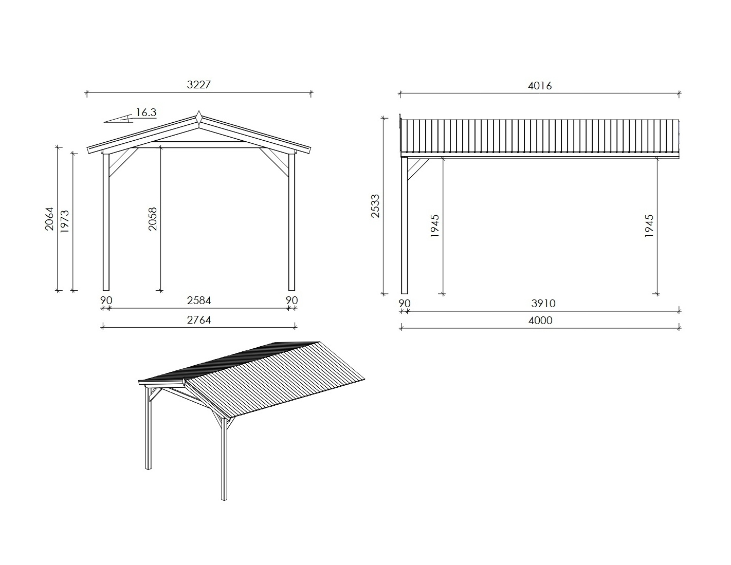 - Szerokość zadaszenia po ziemi (m): 4