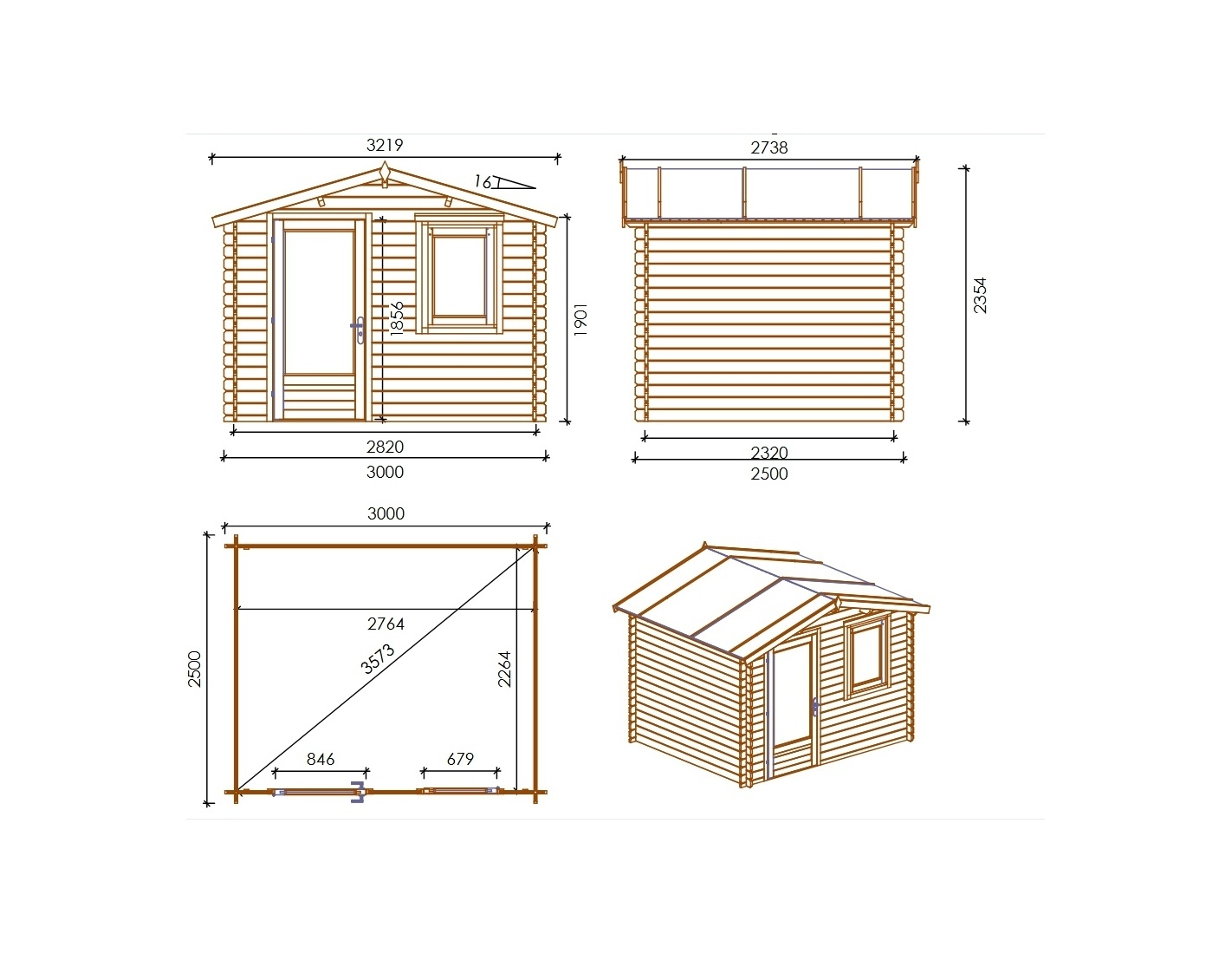 Caseta de madera para herramientas DOM755 de superficie de 7.5 m2, ancho de 3 m, profundidad de 2.5 m y espesor de pared de 28 mm. La caseta es fácil de montar, las instrucciones de montaje están incluidas.