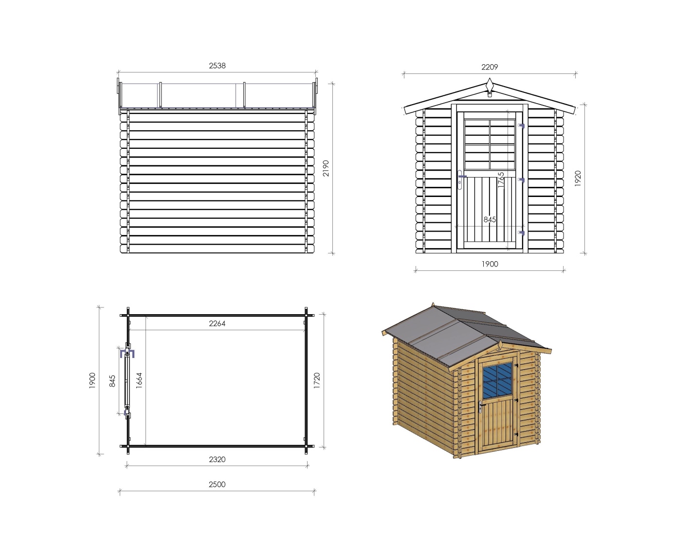 Caseta de madera para herramientas DOM415 de superficie de 4.75 m2, ancho de 1.9 m, profundidad de 2.5 m y espesor de pared de 28 mm. La caseta es fácil de montar, las instrucciones de montaje están incluidas.
