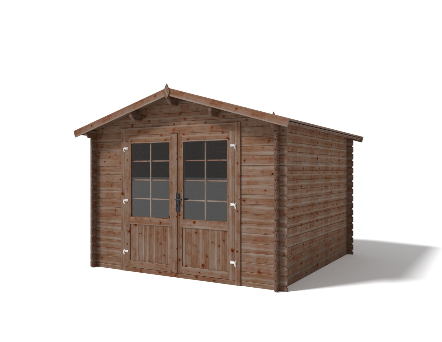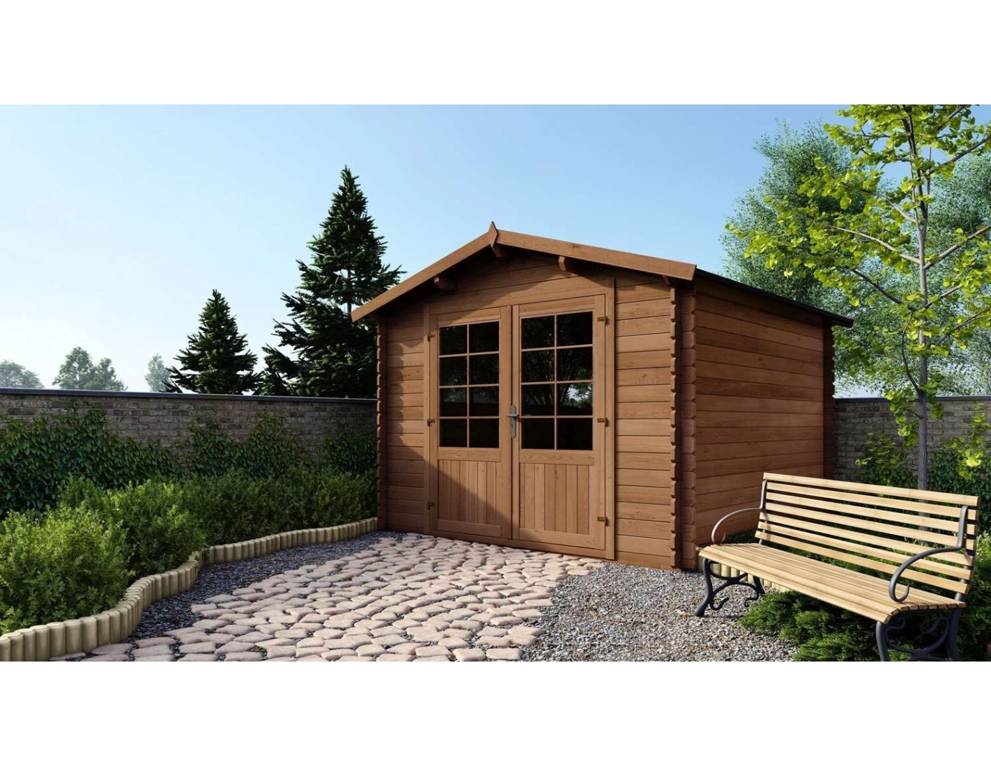 Caseta de madera para herramientas DOM427 de superficie de 9 m2, ancho de 3 m, profundidad de 3 m y espesor de pared de 28 mm. La caseta es fácil de montar, las instrucciones de montaje están incluidas.