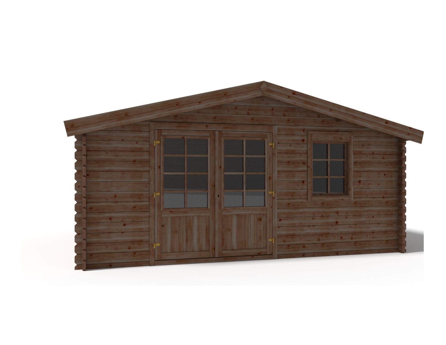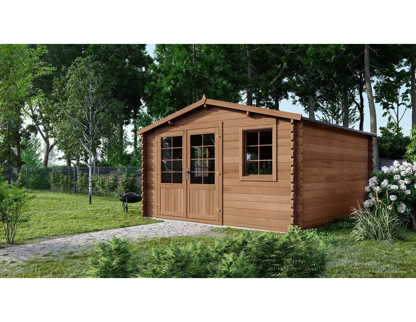 Caseta de madera para herramientas DOM376 de superficie de 20 m2, ancho de 5 m, profundidad de 4 m y espesor de pared de 45 mm. La caseta es fácil de montar, las instrucciones de montaje están incluidas.