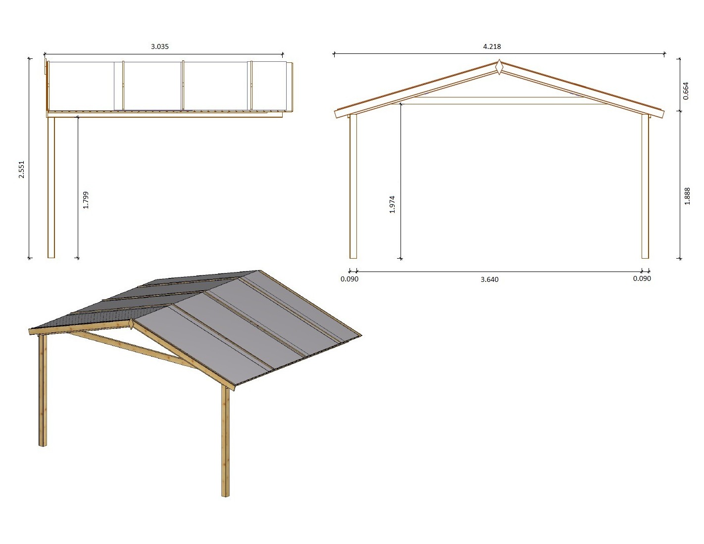 - Cubierta de techo: tableros + fieltro bituminoso + listones de fijación