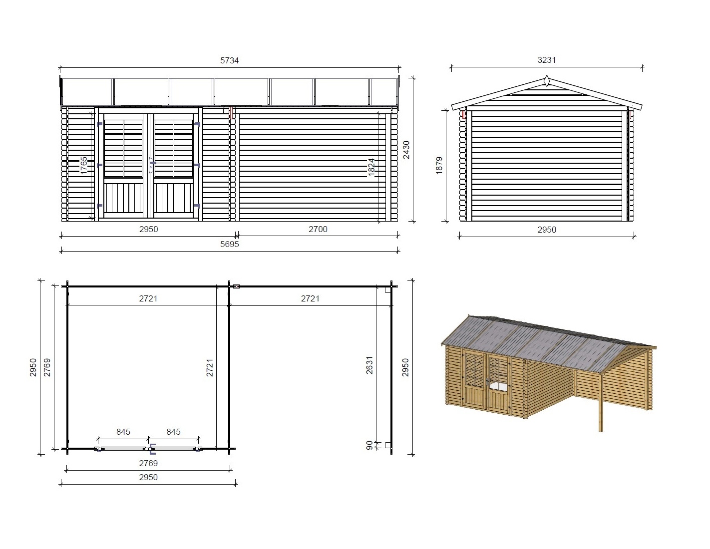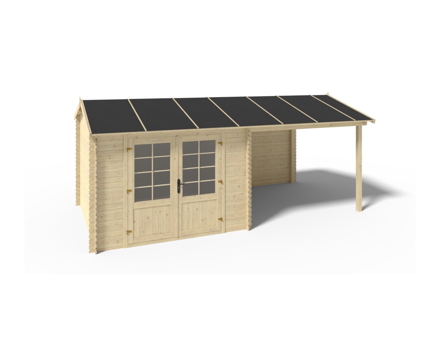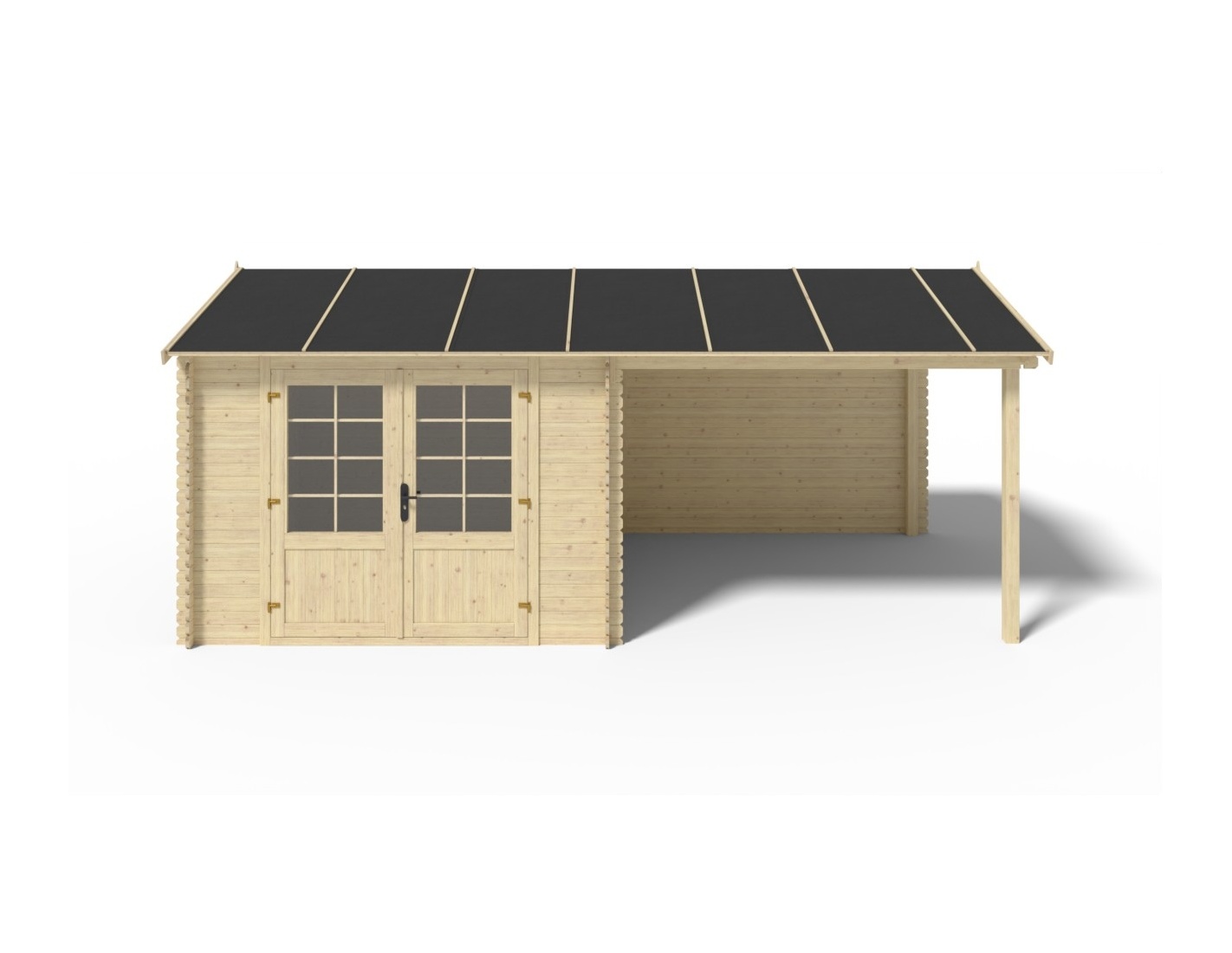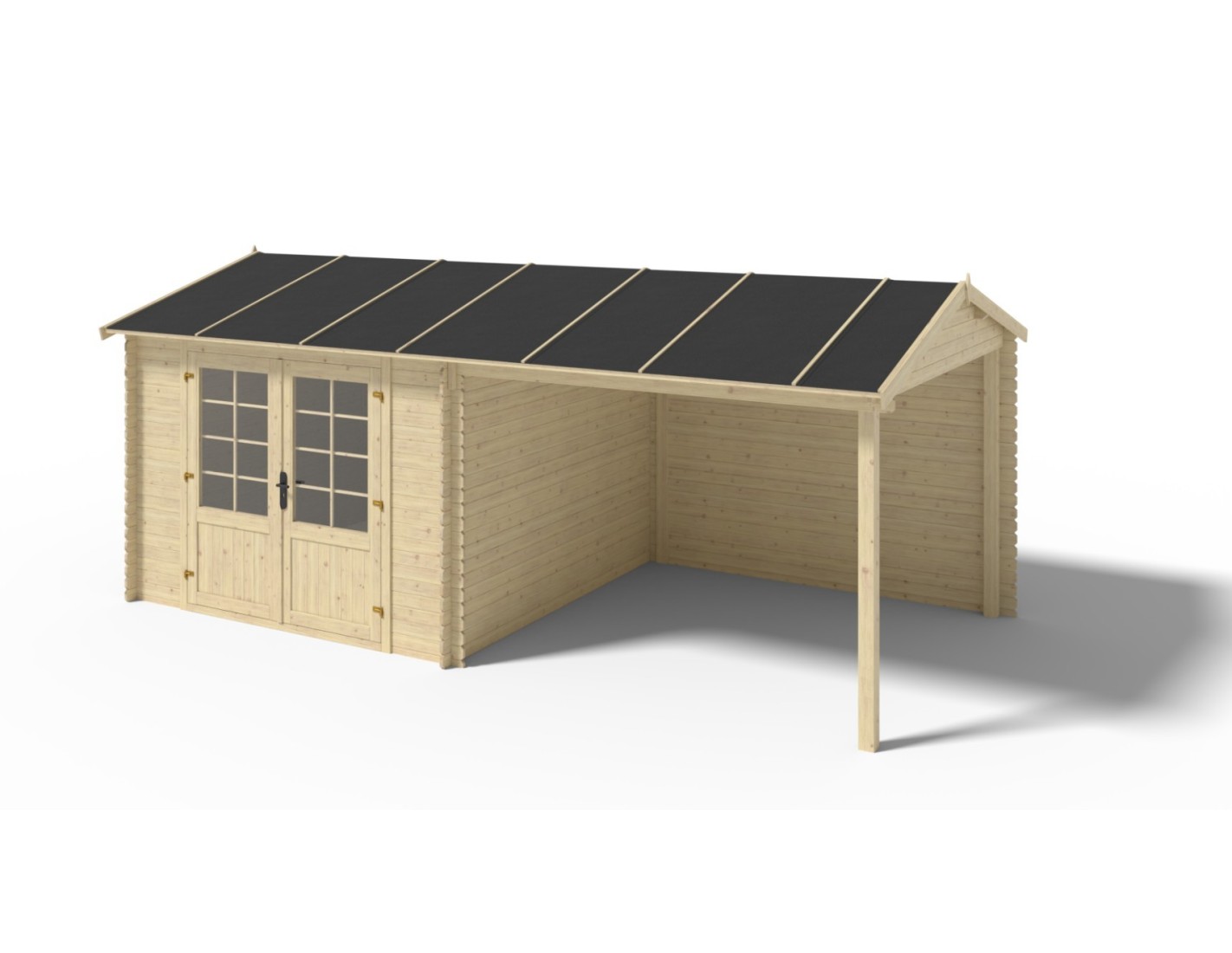 Caseta de madera para herramientas DOM582 de superficie de 18.52 m2, ancho de 5.7 m, profundidad de 2.95 m y espesor de pared de 24 mm. La caseta es fácil de montar, las instrucciones de montaje están incluidas.
