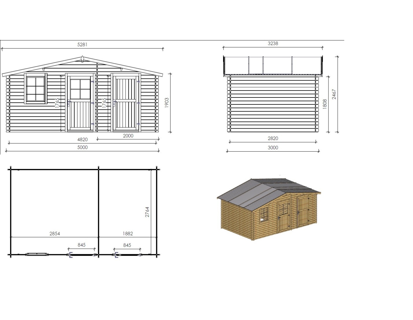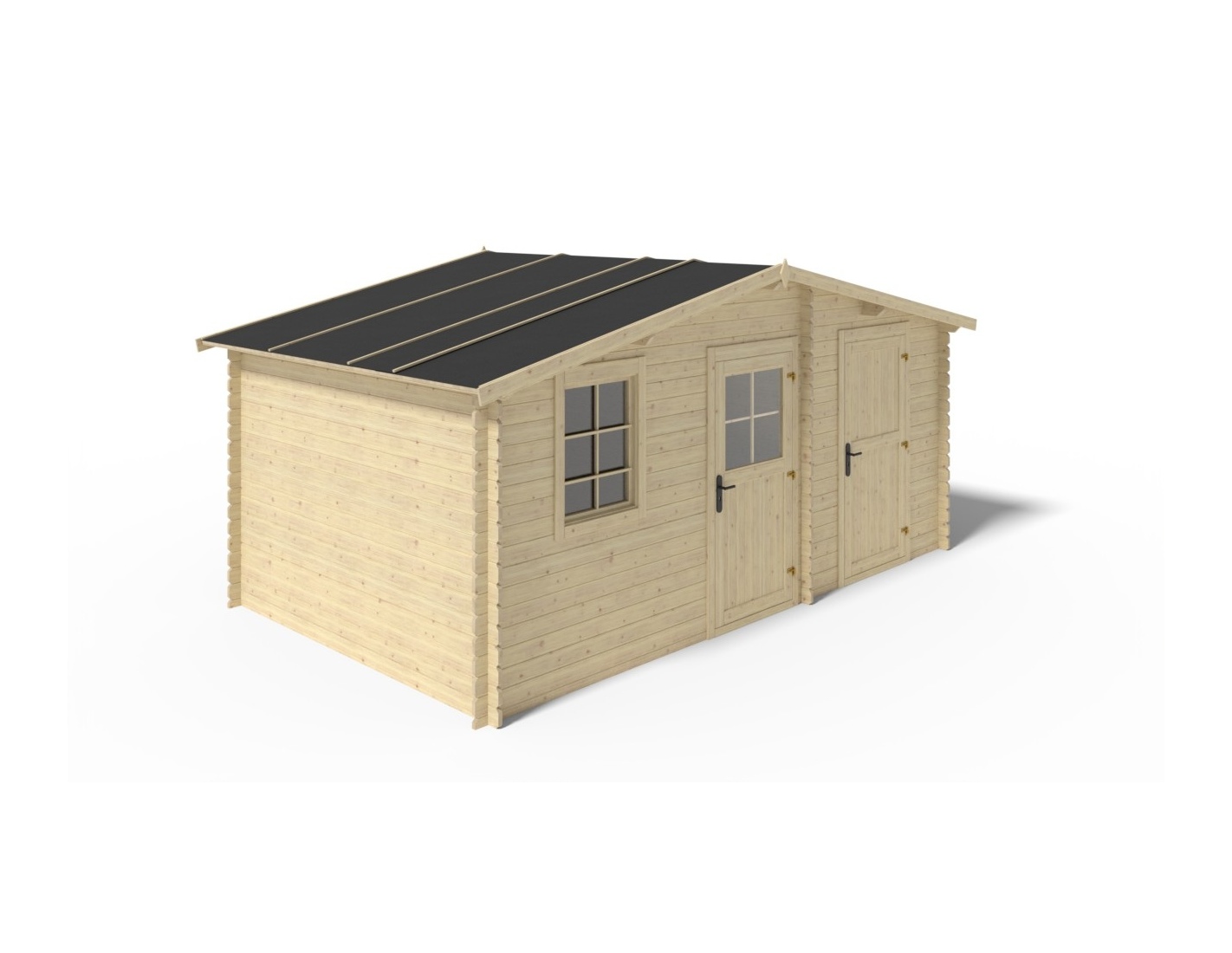 Caseta de madera para herramientas DOM578 de superficie de 15 m2, ancho de 5 m, profundidad de 3 m y espesor de pared de 28 mm. La caseta es fácil de montar, las instrucciones de montaje están incluidas.
