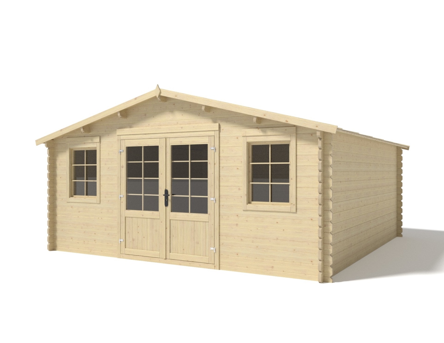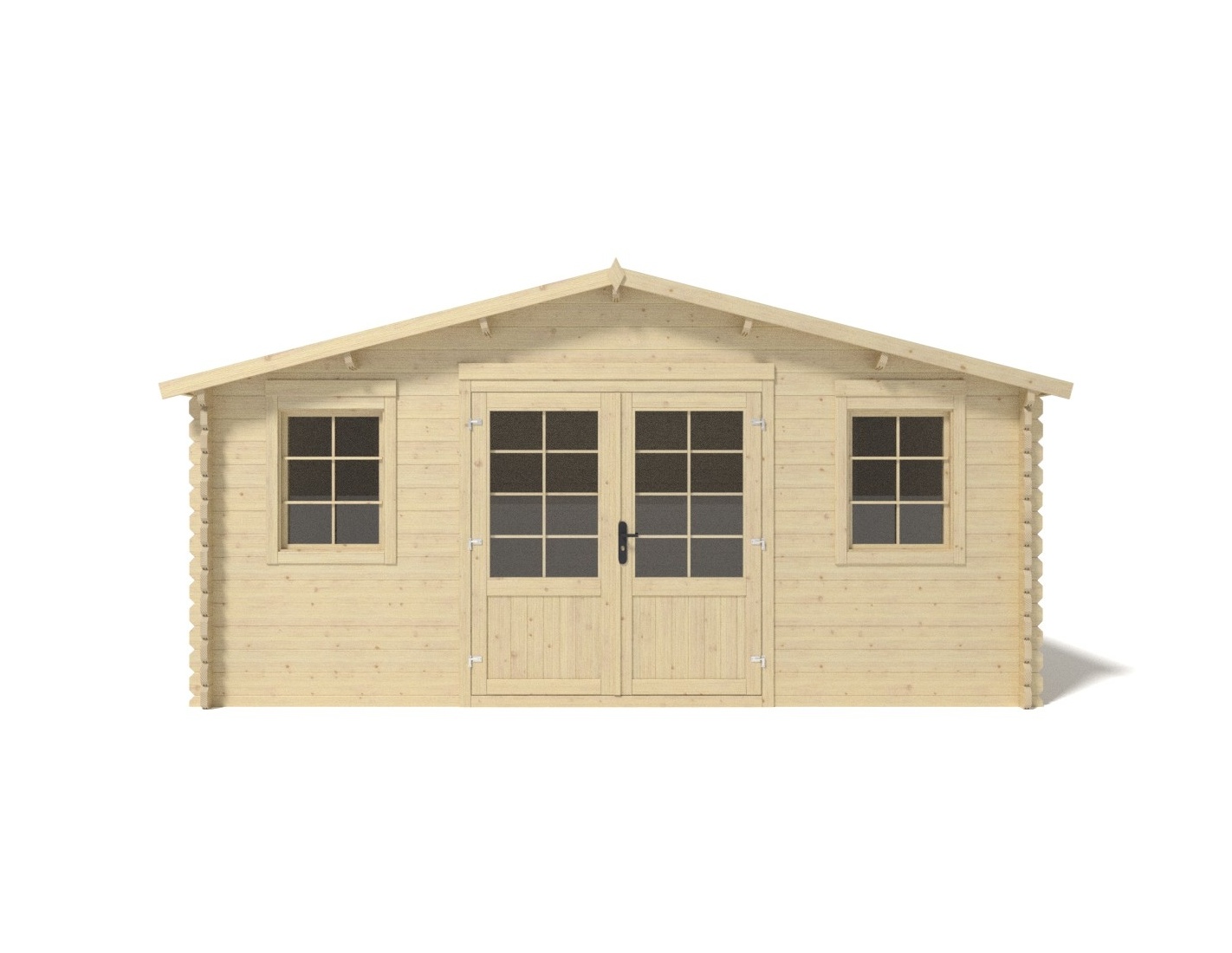 Caseta de madera para herramientas DOM612 de superficie de 25 m2, ancho de 5 m, profundidad de 5 m y espesor de pared de 40 mm. La caseta es fácil de montar, las instrucciones de montaje están incluidas.