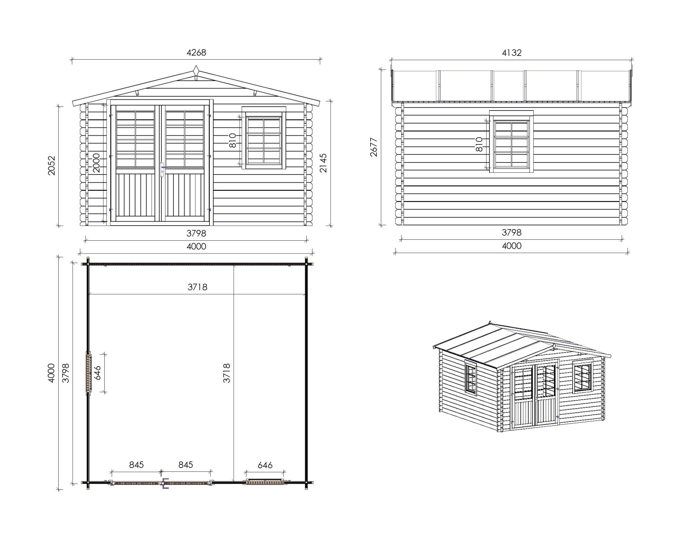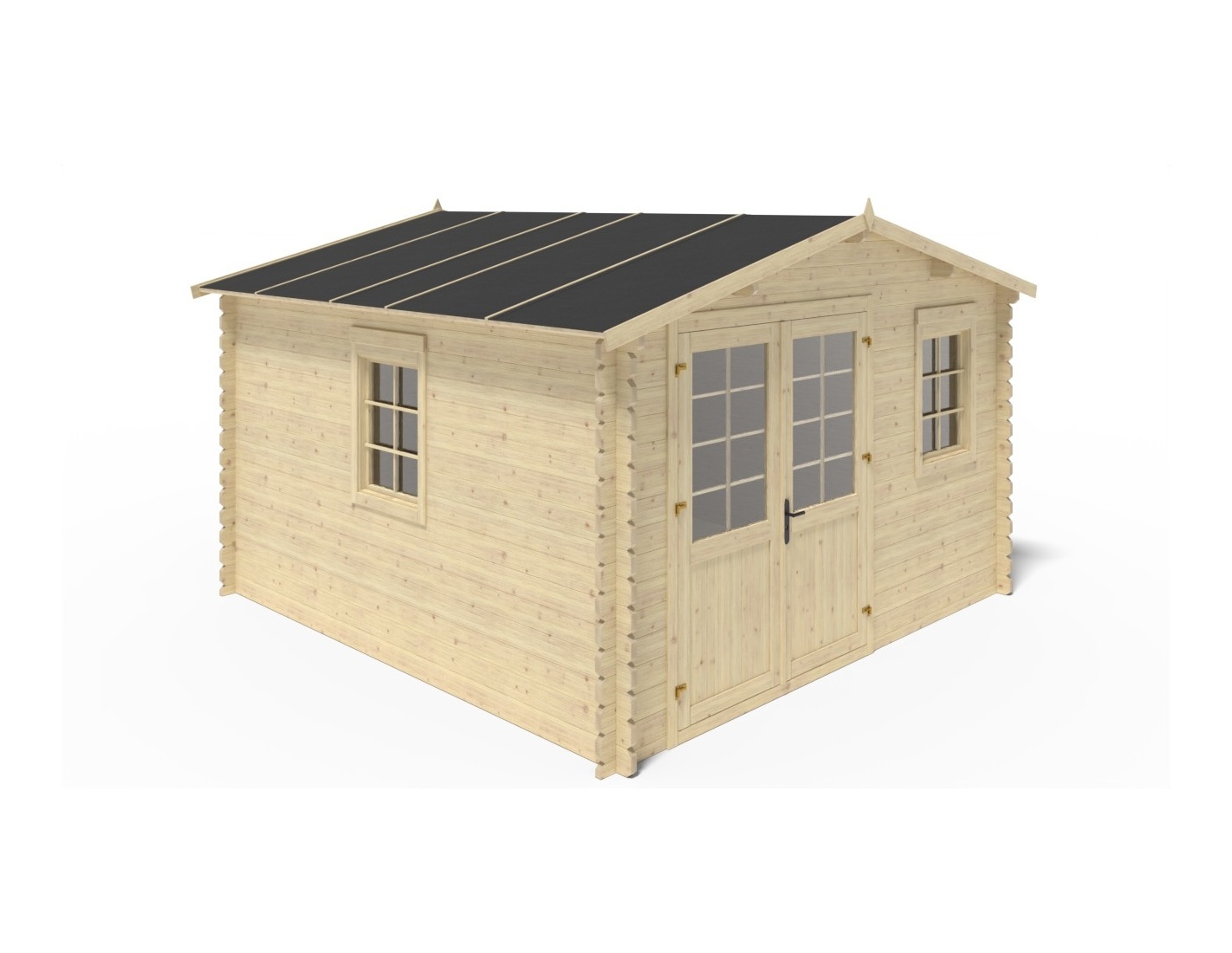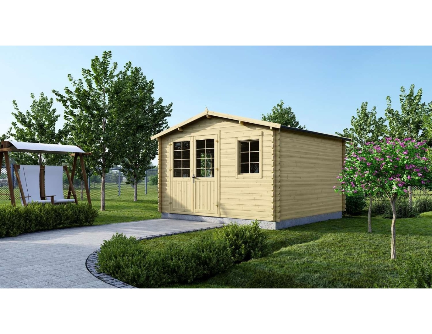 Caseta de madera para herramientas DOM611 de superficie de 16 m2, ancho de 4 m, profundidad de 4 m y espesor de pared de 40 mm. La caseta es fácil de montar, las instrucciones de montaje están incluidas.