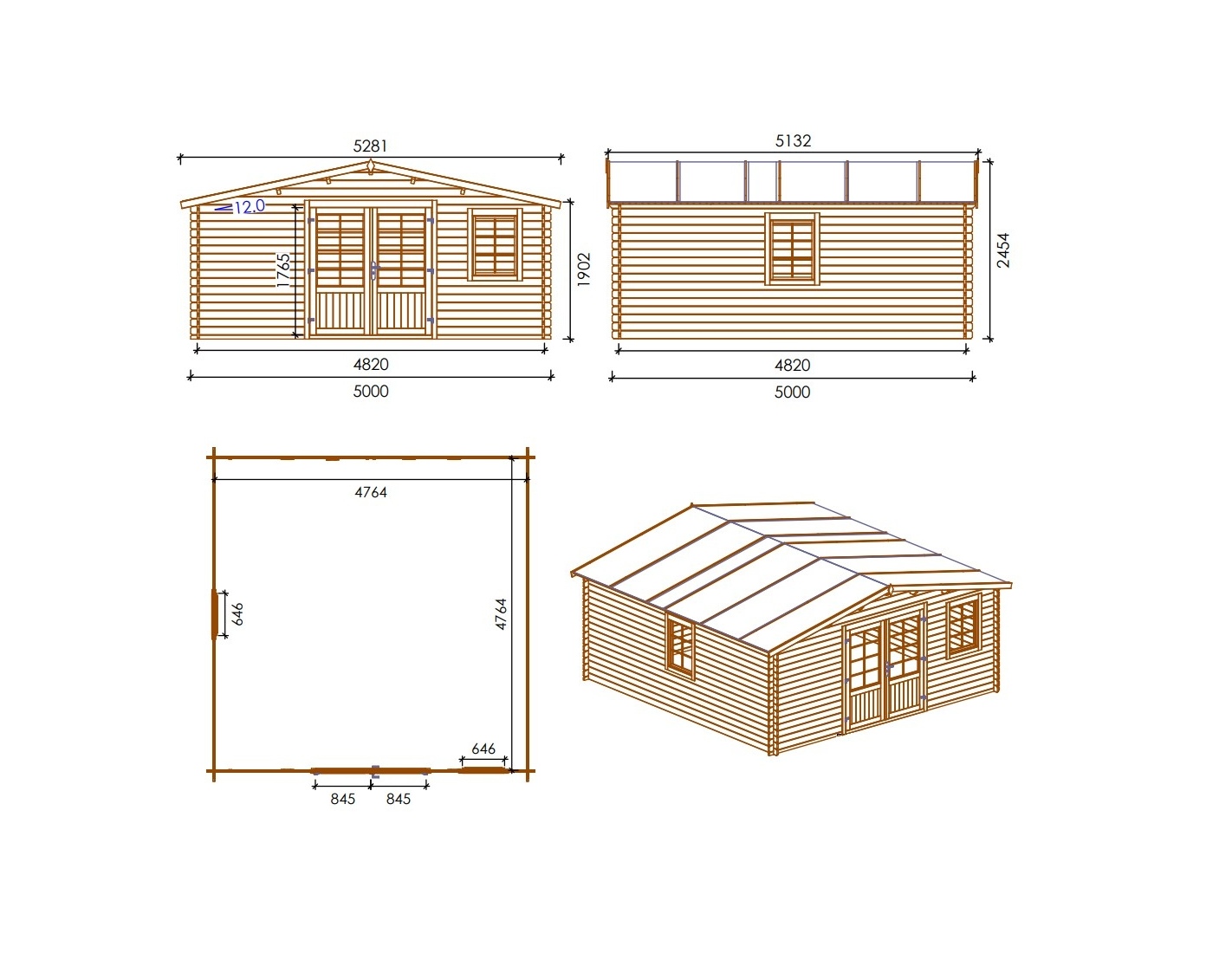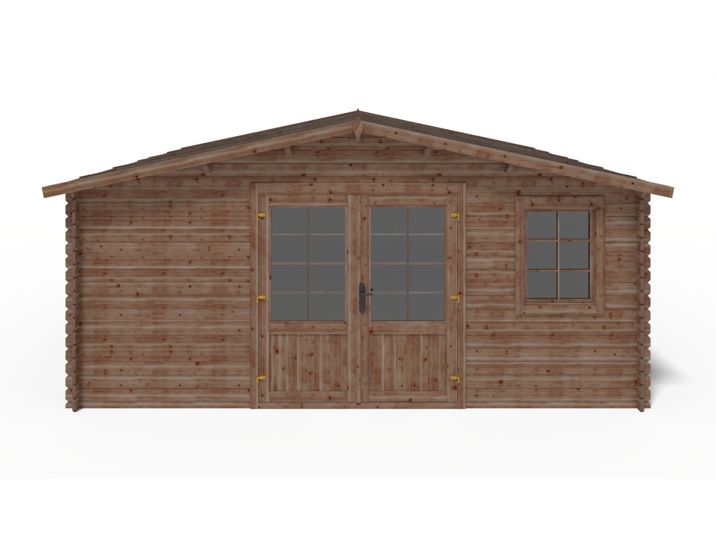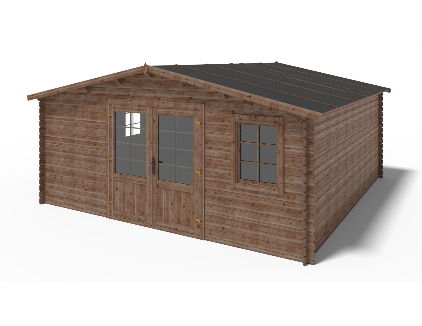 Caseta de madera para herramientas DOM596 de superficie de 25 m2, ancho de 5 m, profundidad de 5 m y espesor de pared de 28 mm. La caseta es fácil de montar, las instrucciones de montaje están incluidas.