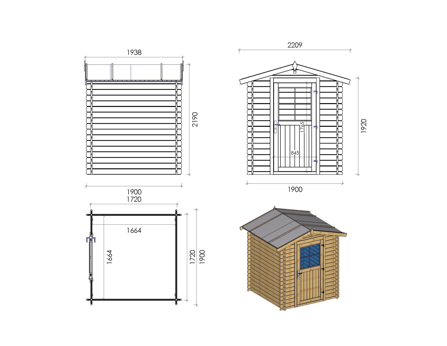 Caseta de madera para herramientas DOM593 de superficie de 3.61 m2, ancho de 1.9 m, profundidad de 1.9 m y espesor de pared de 28 mm. La caseta es fácil de montar, las instrucciones de montaje están incluidas.
