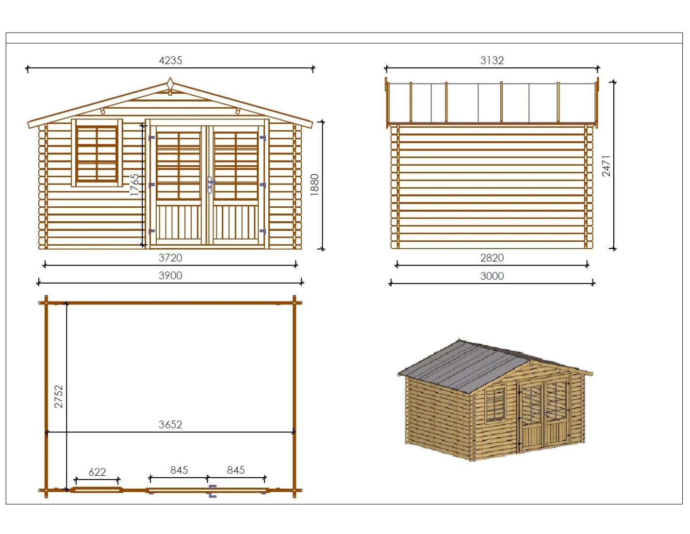 Caseta de madera para herramientas DOM562 de superficie de 11.7 m2, ancho de 3.9 m, profundidad de 3 m y espesor de pared de 34 mm. La caseta es fácil de montar, las instrucciones de montaje están incluidas.