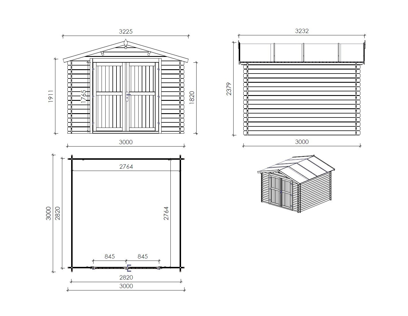 Caseta de madera para herramientas DOM458 de superficie de 9 m2, ancho de 3 m, profundidad de 3 m y espesor de pared de 28 mm. La caseta es fácil de montar, las instrucciones de montaje están incluidas.