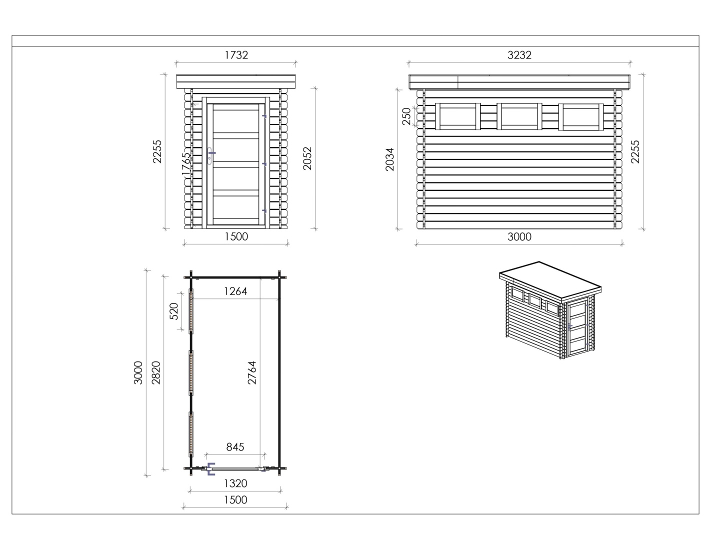 Caseta de madera para herramientas DOM628 de superficie de 4.5 m2, ancho de 1.5 m, profundidad de 3 m y espesor de pared de 28 mm. La caseta es fácil de montar, las instrucciones de montaje están incluidas.