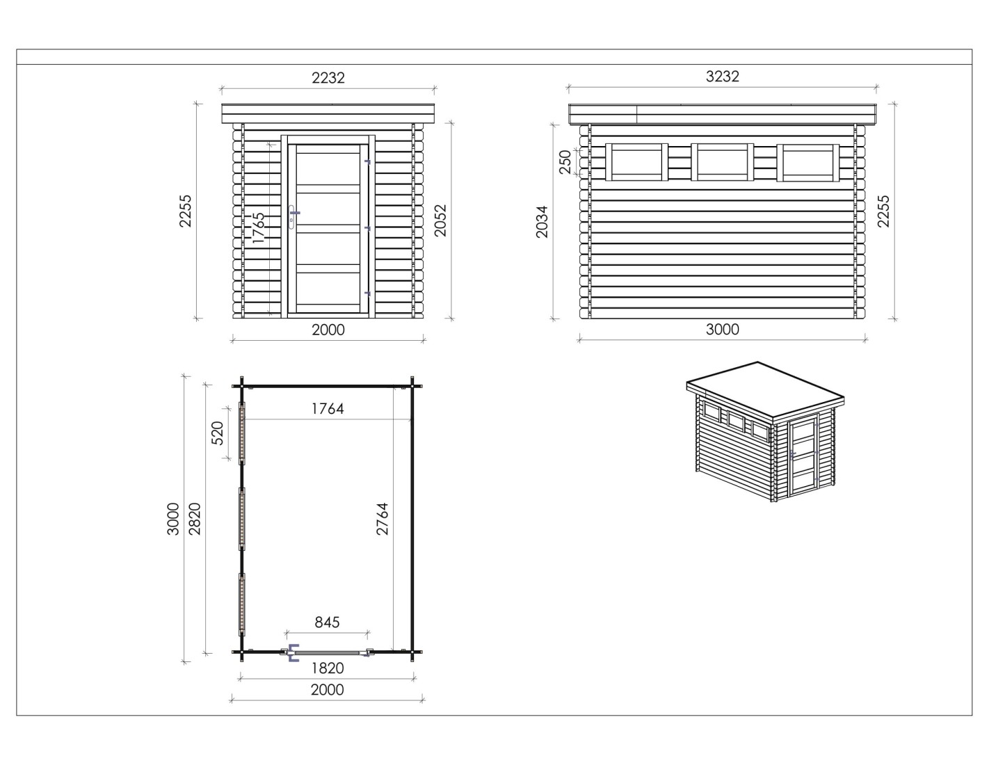 Caseta de madera para herramientas DOM627 de superficie de 6 m2, ancho de 2 m, profundidad de 3 m y espesor de pared de 28 mm. La caseta es fácil de montar, las instrucciones de montaje están incluidas.