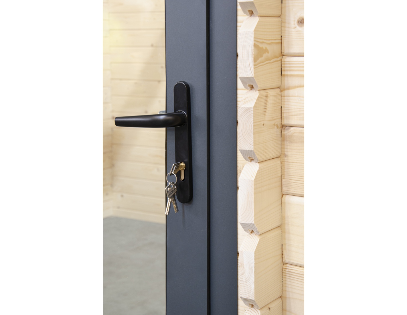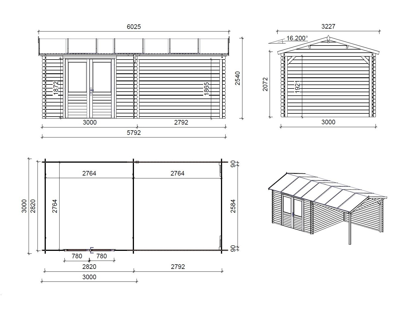 Caseta de madera para herramientas DOM639 de superficie de 17.4 m2, ancho de 5.79 m, profundidad de 3 m y espesor de pared de 28 mm. La caseta es fácil de montar, las instrucciones de montaje están incluidas.