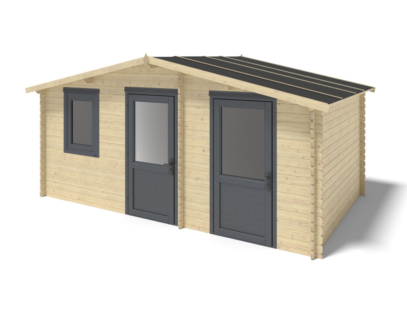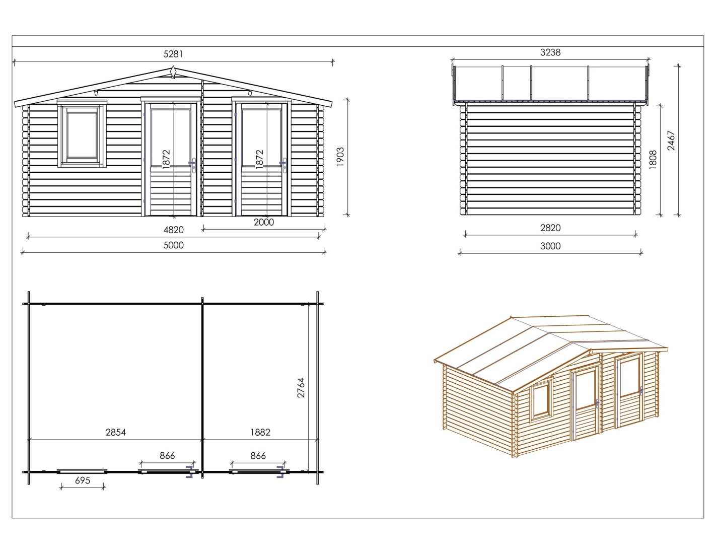 Caseta de madera para herramientas DOM638 de superficie de 15 m2, ancho de 5 m, profundidad de 3 m y espesor de pared de 28 mm. La caseta es fácil de montar, las instrucciones de montaje están incluidas.