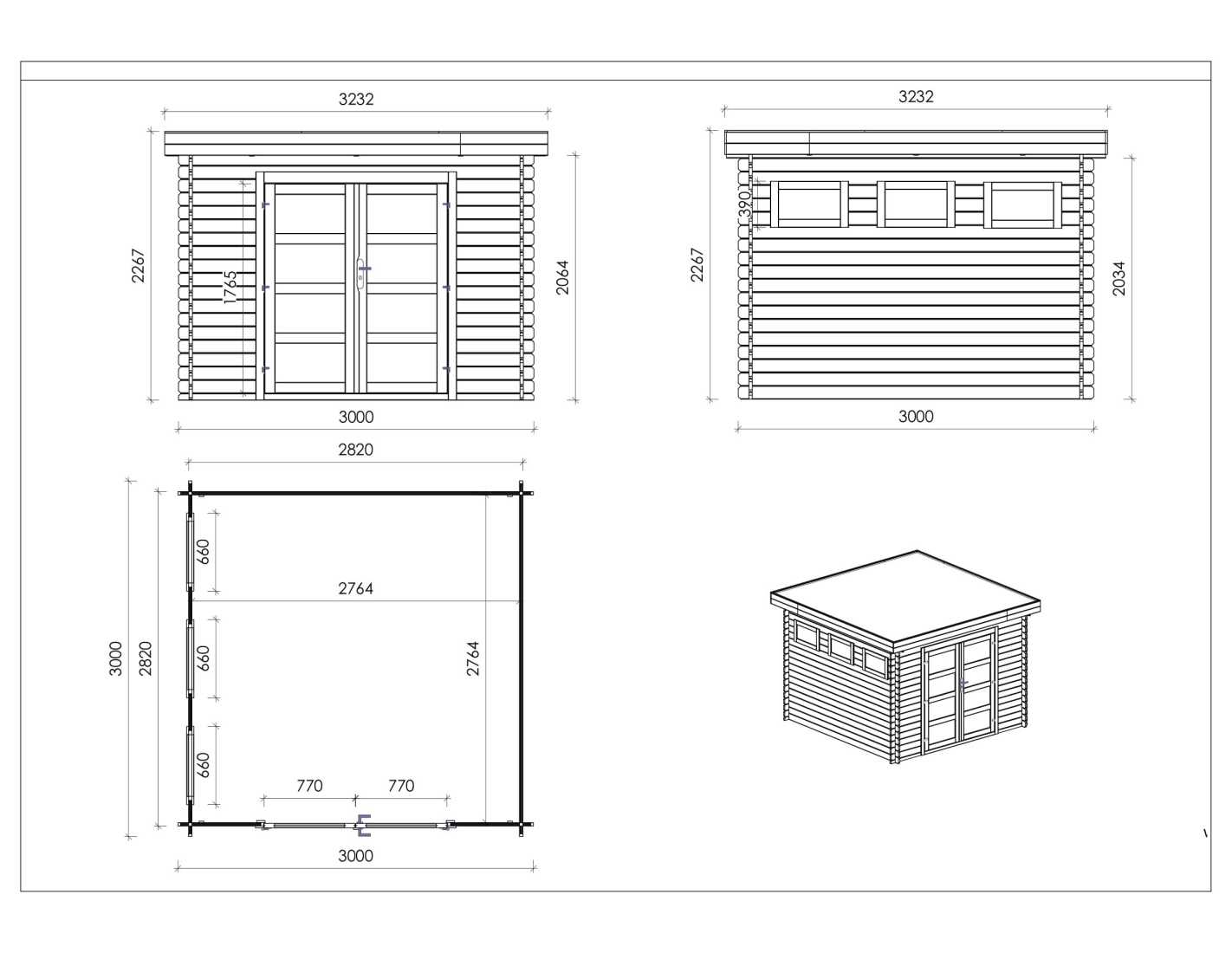 Caseta de madera para herramientas DOM629 de superficie de 9 m2, ancho de 3 m, profundidad de 3 m y espesor de pared de 28 mm. La caseta es fácil de montar, las instrucciones de montaje están incluidas.