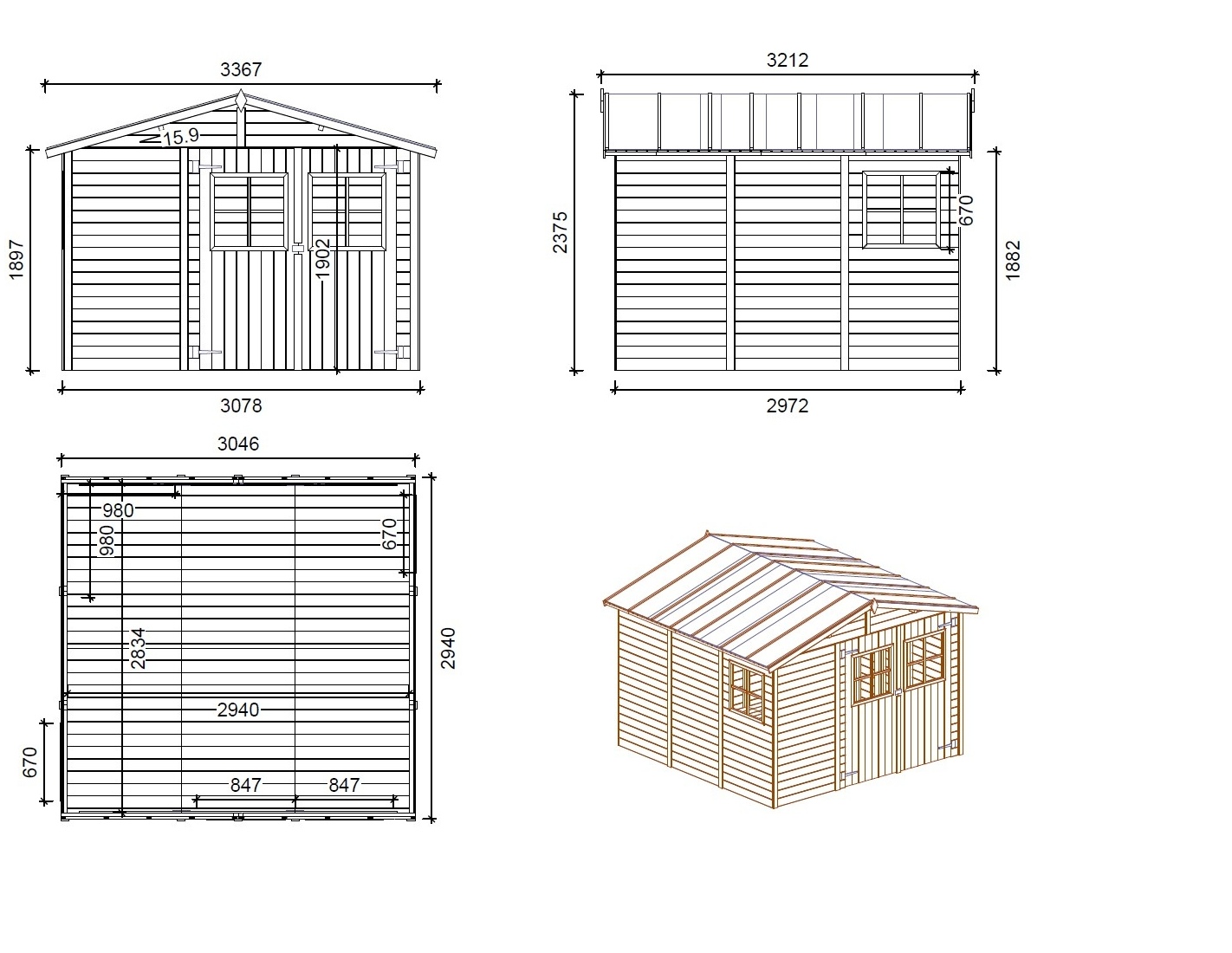 - Grosor del suelo de la caseta (mm): 18
