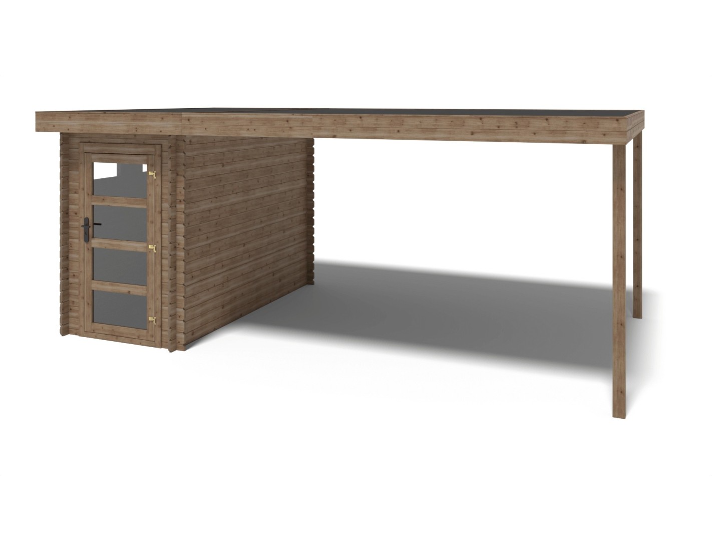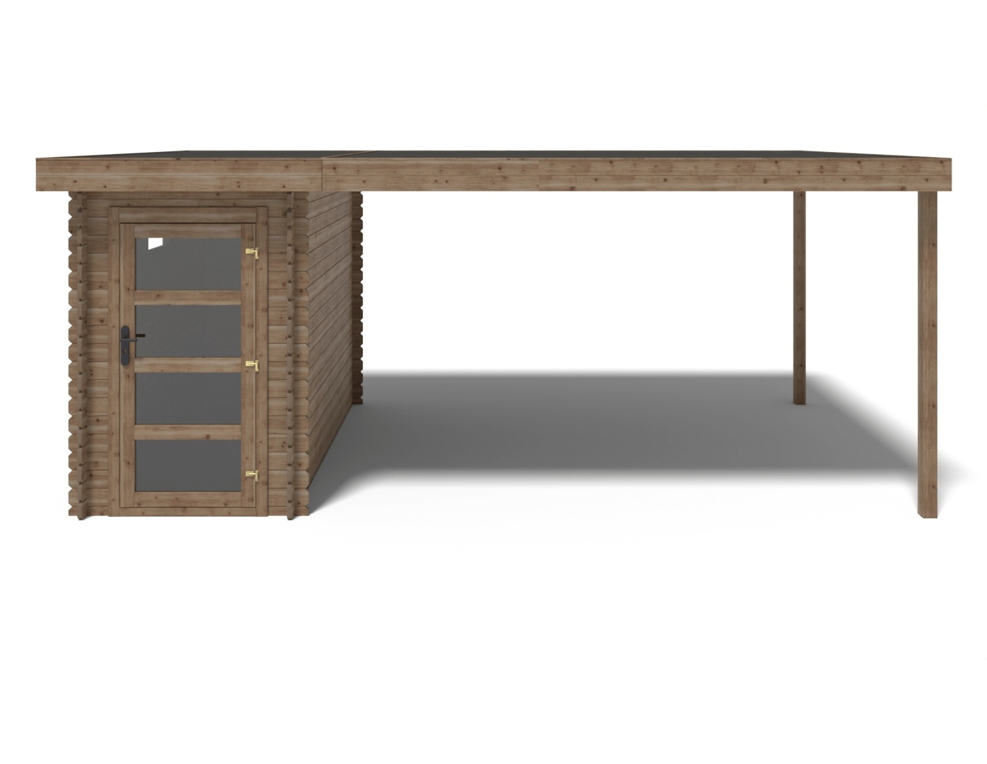 Caseta de madera para herramientas DOM628+DOM179 de superficie de 16 m2, ancho de 5.5 m, profundidad de 3 m y espesor de pared de 28 mm. La caseta es fácil de montar, las instrucciones de montaje están incluidas.