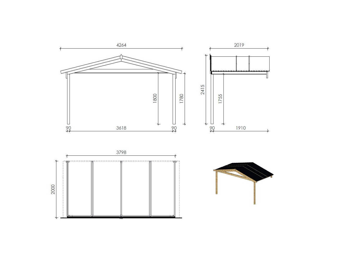 - Grosor del poste (mm): 90x90
