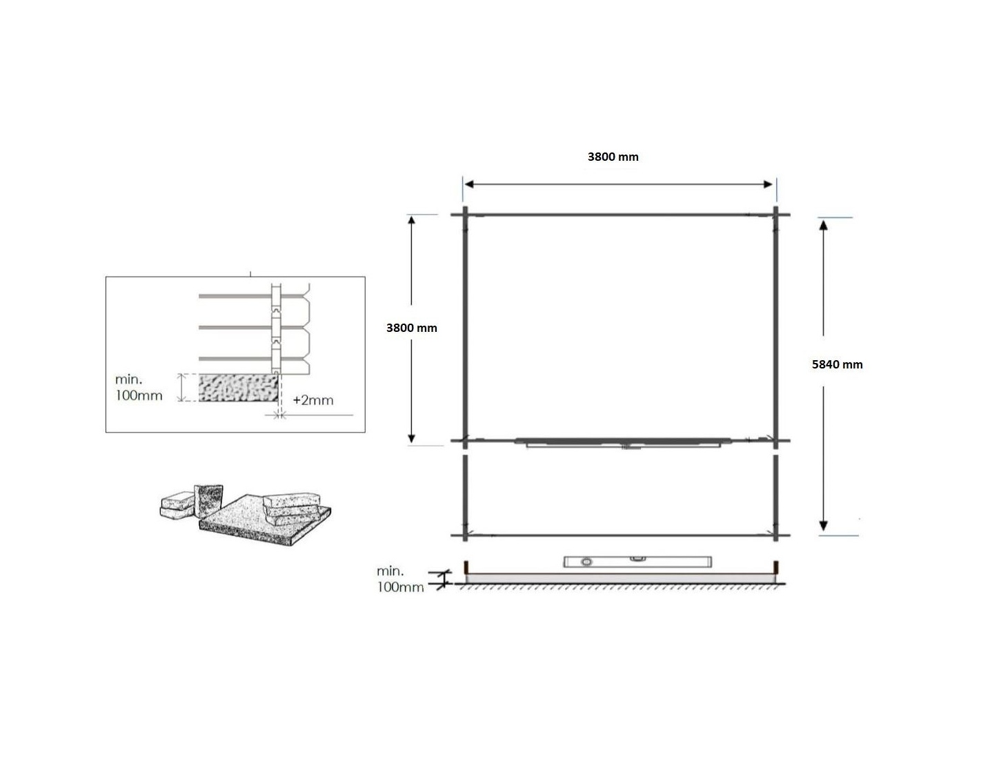 - Cubierta de techo: Panel OSB + fieltro bituminoso + listones de fijación