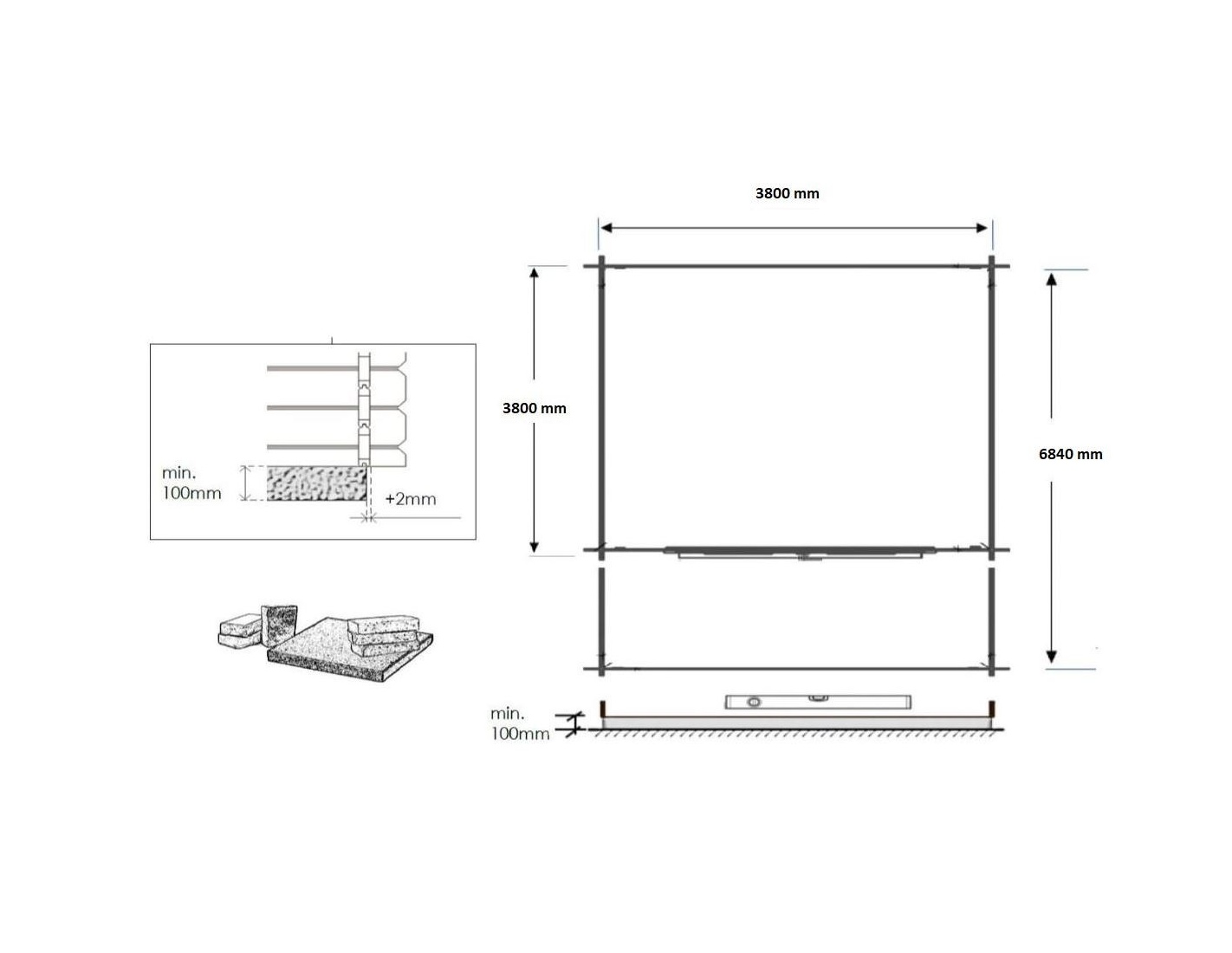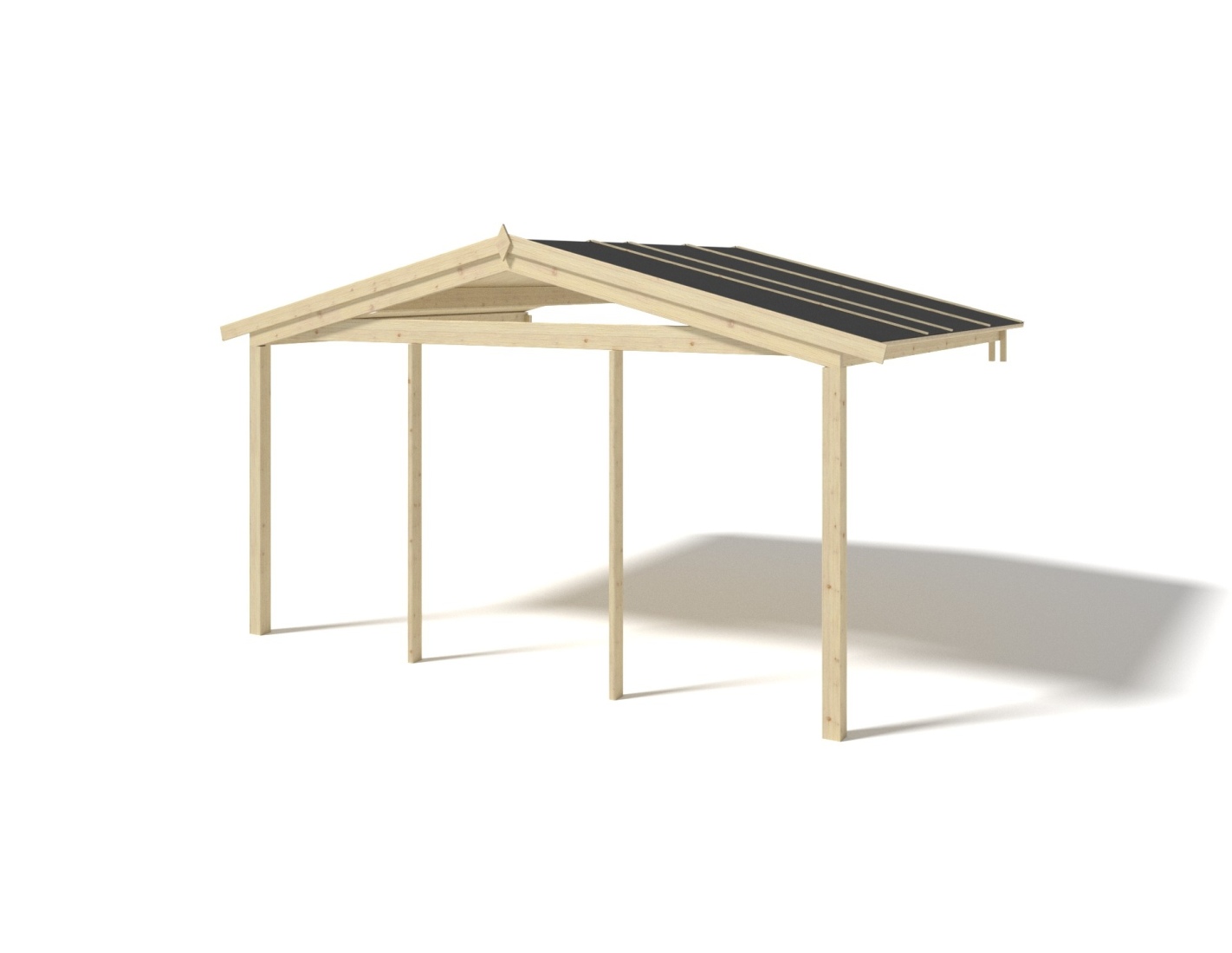 - Cubierta de techo: Panel OSB + fieltro bituminoso + listones de fijación