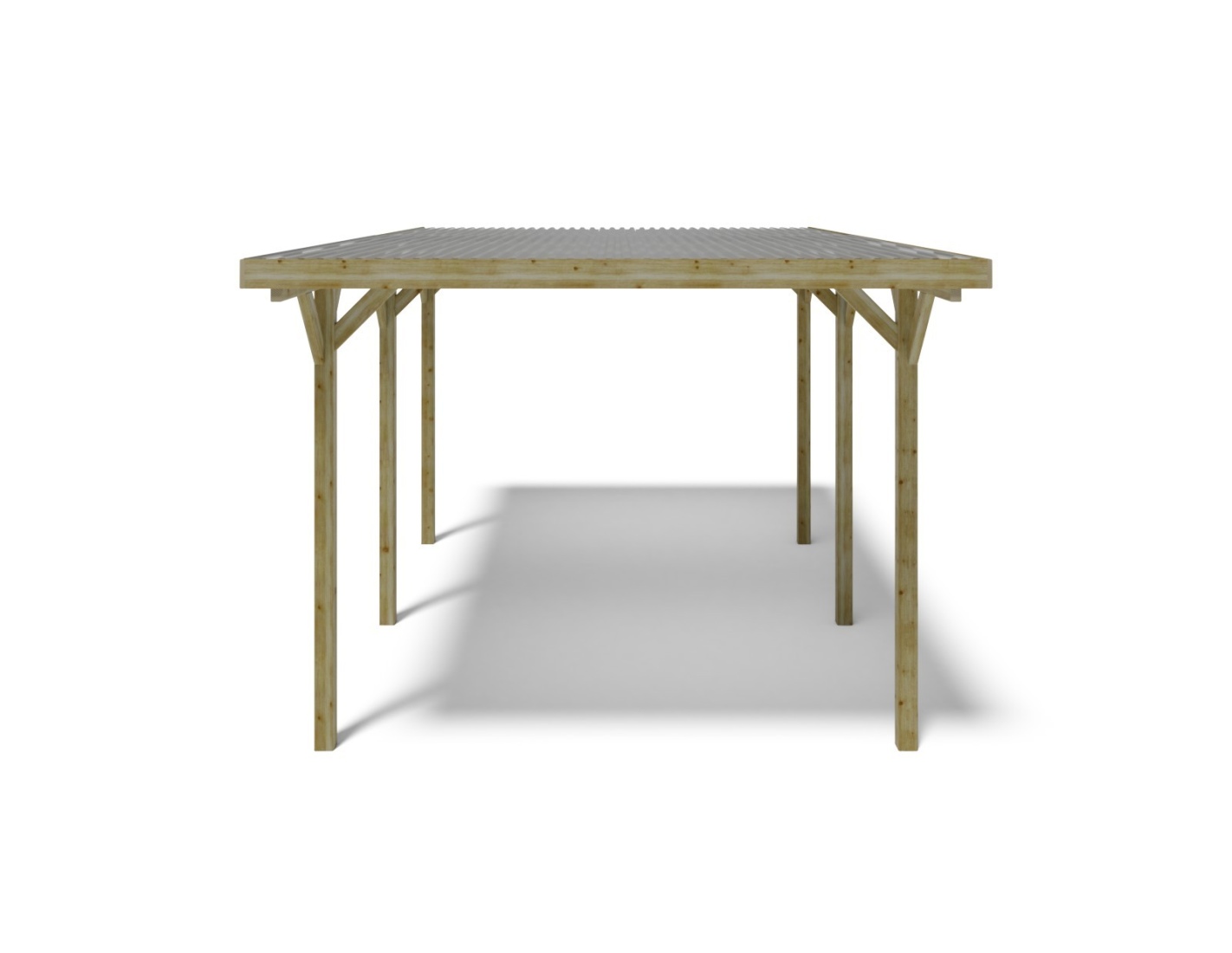 Cochera CAR16PVCTR de ancho de 3.04 m, produndidad de 5.12 m y altura de entrada de 2.07 m, puede utilizarse como tejado para una plaza de aparcamiento o, por ejemplo, como tejado de terraza. El montaje de la cochera, gracias a las instrucciones adjuntas al producto, no causa mayores problemas.