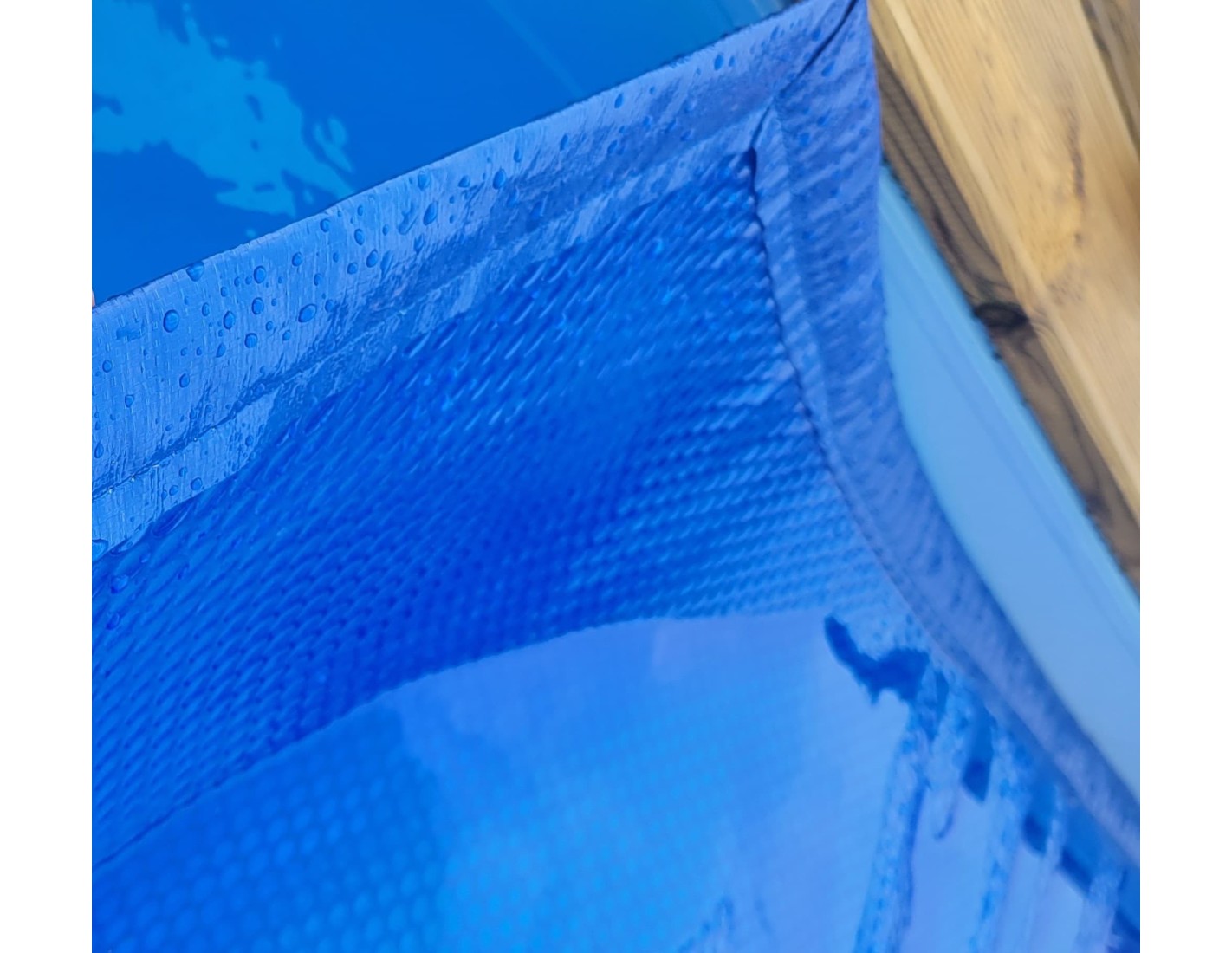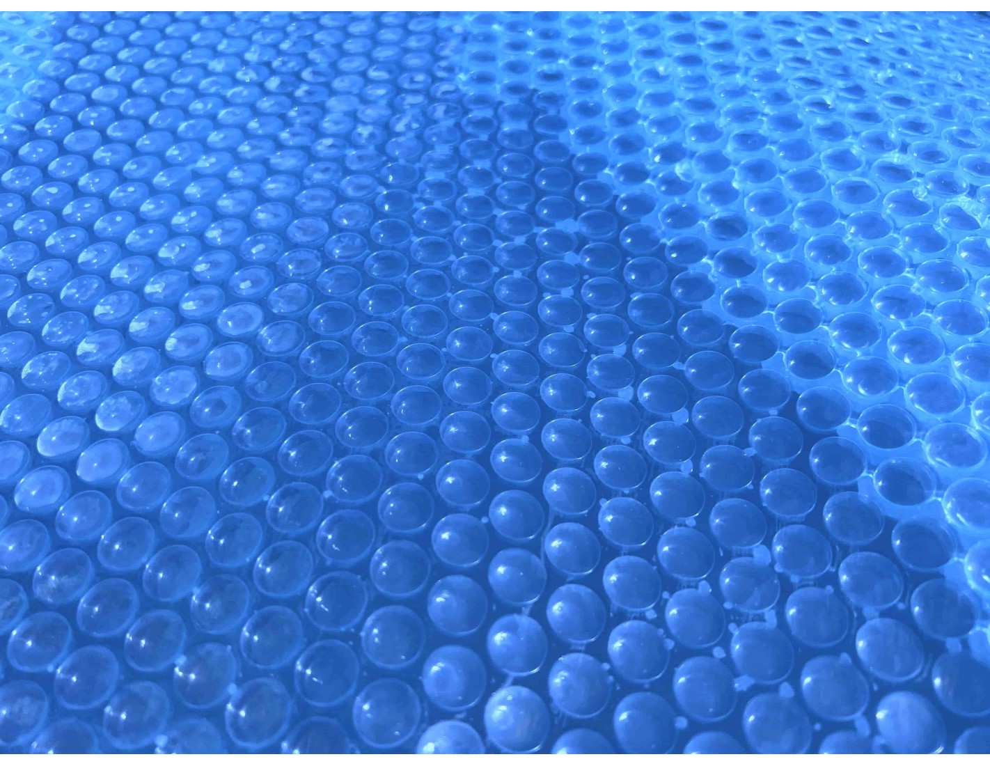 Cobertor de burbujas de verano para piscinas, cortado a la forma y medida del interior de la piscina.Polietileno 400 µColor azul oscuroLos bordes del cobertor están cosidos y son duraderos.