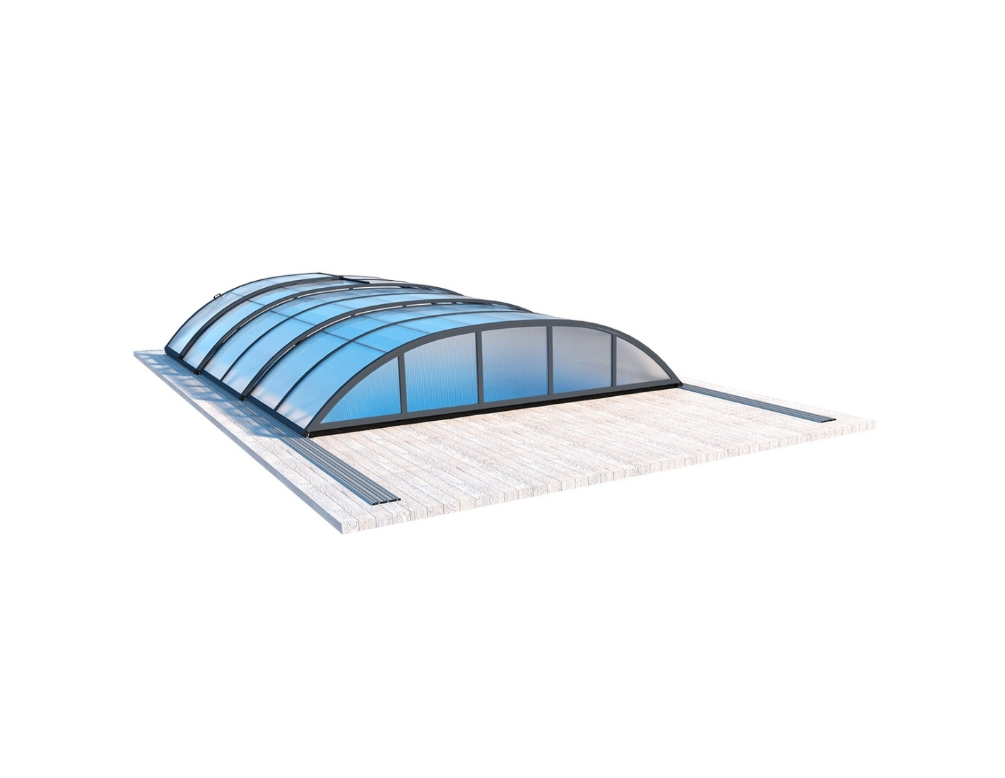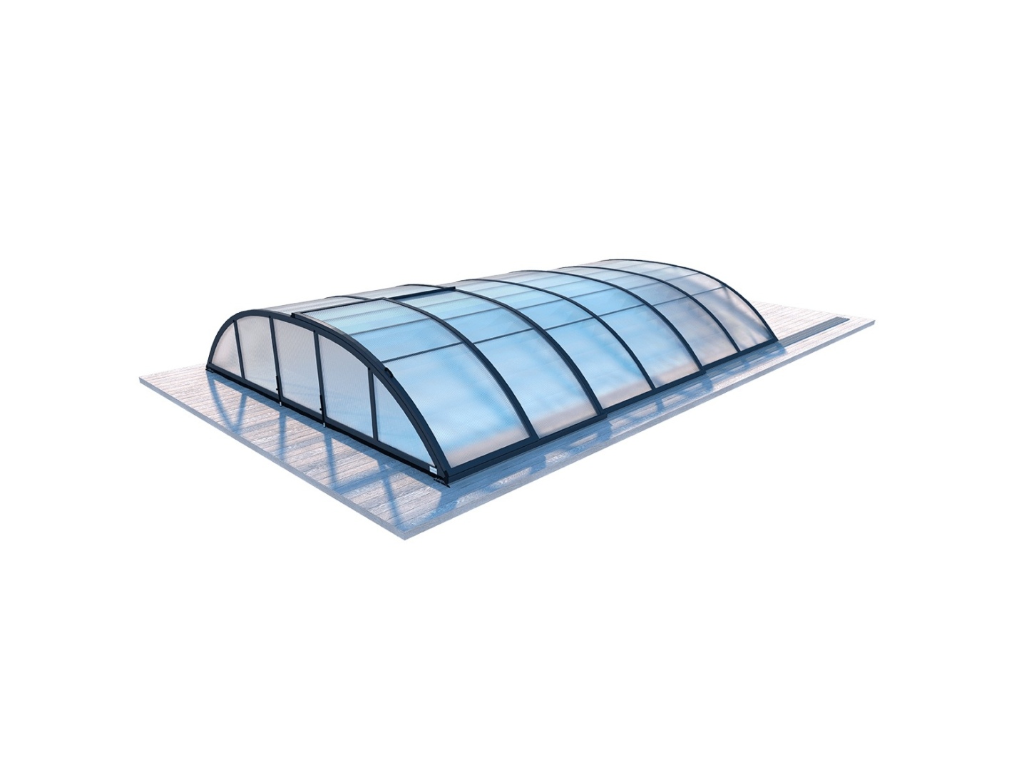 La cubierta es resistente y cumple perfectamente sus funciones principales: mantener el agua limpia, proteger contra las bajas temperaturas y las condiciones climáticas variables. Es un elemento decorativo y funcional de tu piscina. No es muy alta, pero aun así permite utilizar la piscina con los segmentos cerrados.