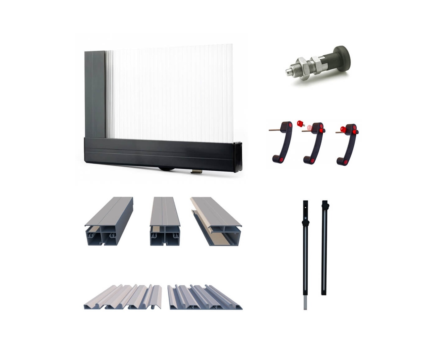 - perfiles con recubrimiento en polvo, en color RAL 7016 – grafito o RAL 7037 – gris – a elegir – por favor, indique el color al hacer el pedido