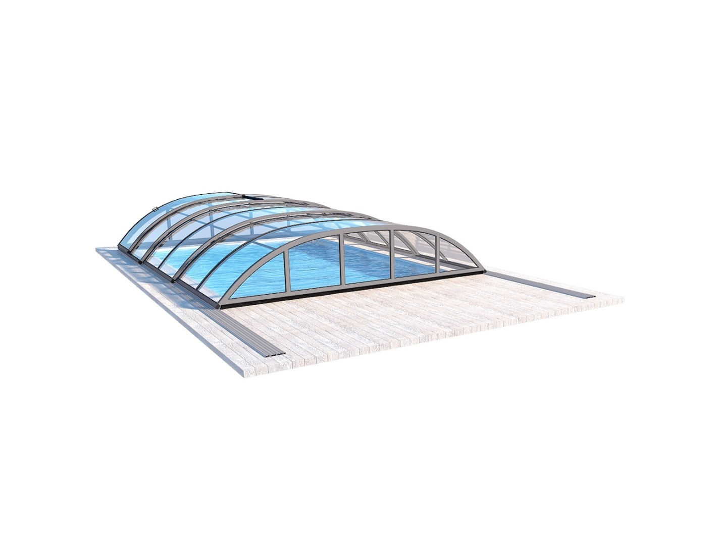 El material utilizado para las cubiertas de piscina ofertadas es Policarbonato compacto de 3 mm, que se caracteriza por una excelente capacidad de aislamiento. Protege contra la pérdida de calor, lo que reduce el consumo de energía necesaria para mantener la temperatura adecuada del agua. Además, destaca por su resistencia a las cargas de nieve y hielo.