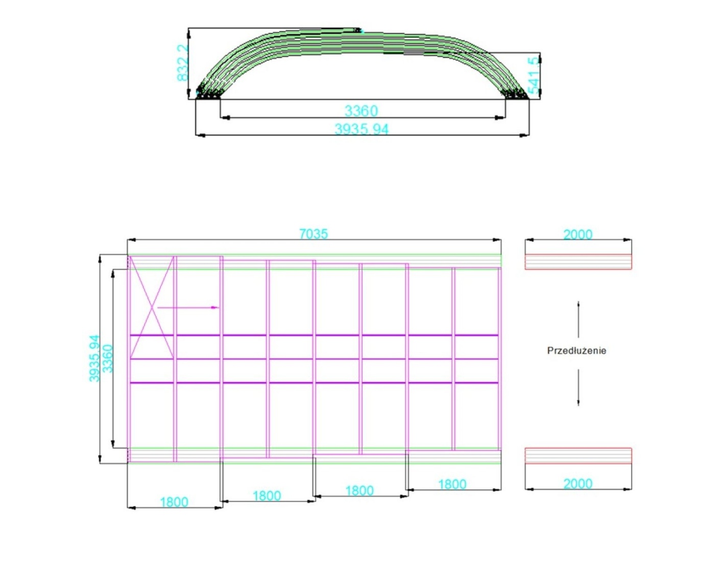 - rieles del largo de la cubierta + extensión de 2 m