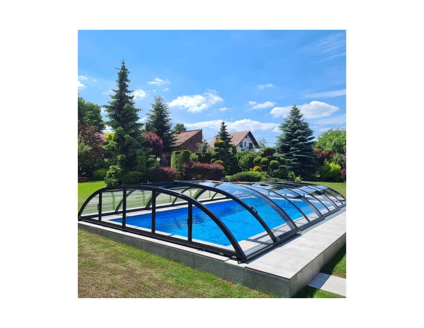 Gracias a las cubiertas Horizon, puedes disfrutar de tu piscina exterior de jardín durante varios meses al año. Con calefacción adicional del agua, la temporada puede durar desde finales de primavera hasta principios de otoño. ¡La temperatura del agua en una piscina cubierta es varios grados más alta! Una piscina en el jardín es un lugar lleno de alegría, relajación y reuniones con amigos: ¡Haz que la temporada de baño dure más!