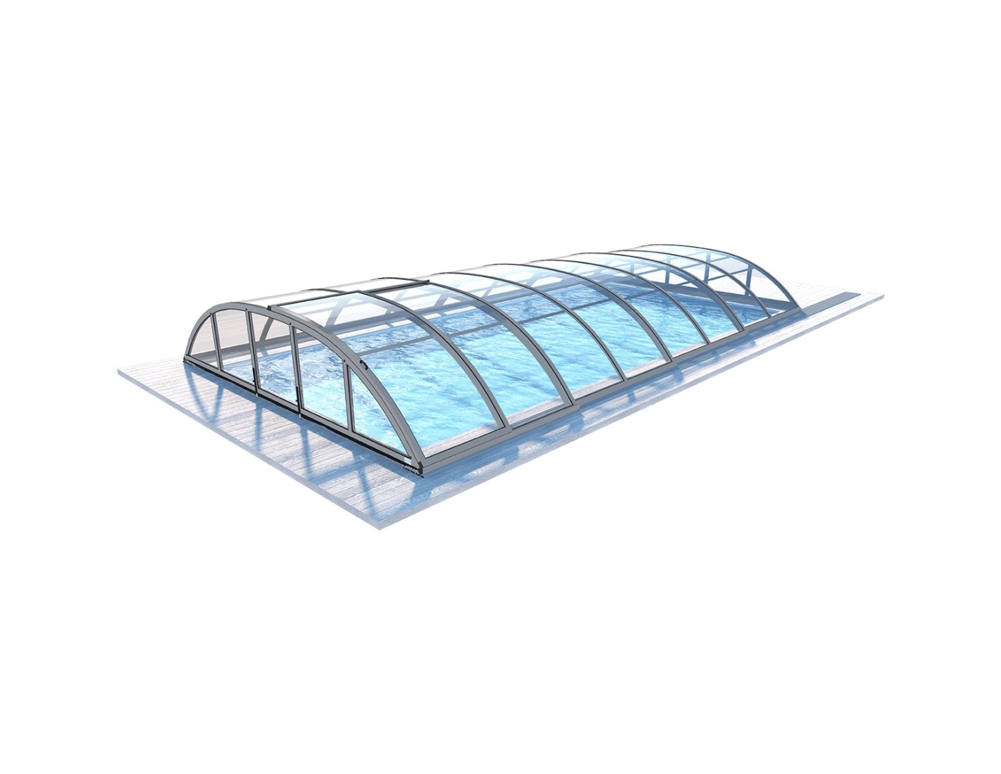 El material utilizado para las cubiertas de piscina ofertadas es Policarbonato compacto de 3 mm, que se caracteriza por una excelente capacidad de aislamiento. Protege contra la pérdida de calor, lo que reduce el consumo de energía necesaria para mantener la temperatura adecuada del agua. Además, destaca por su resistencia a las cargas de nieve y hielo.