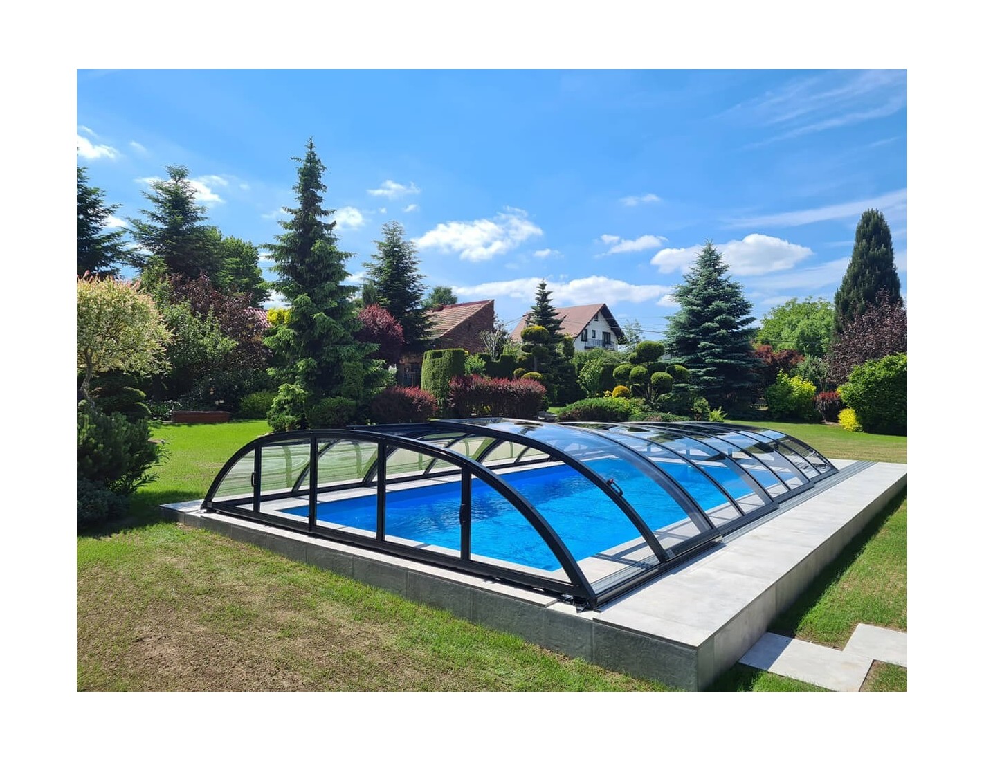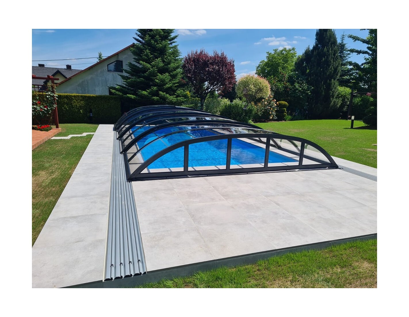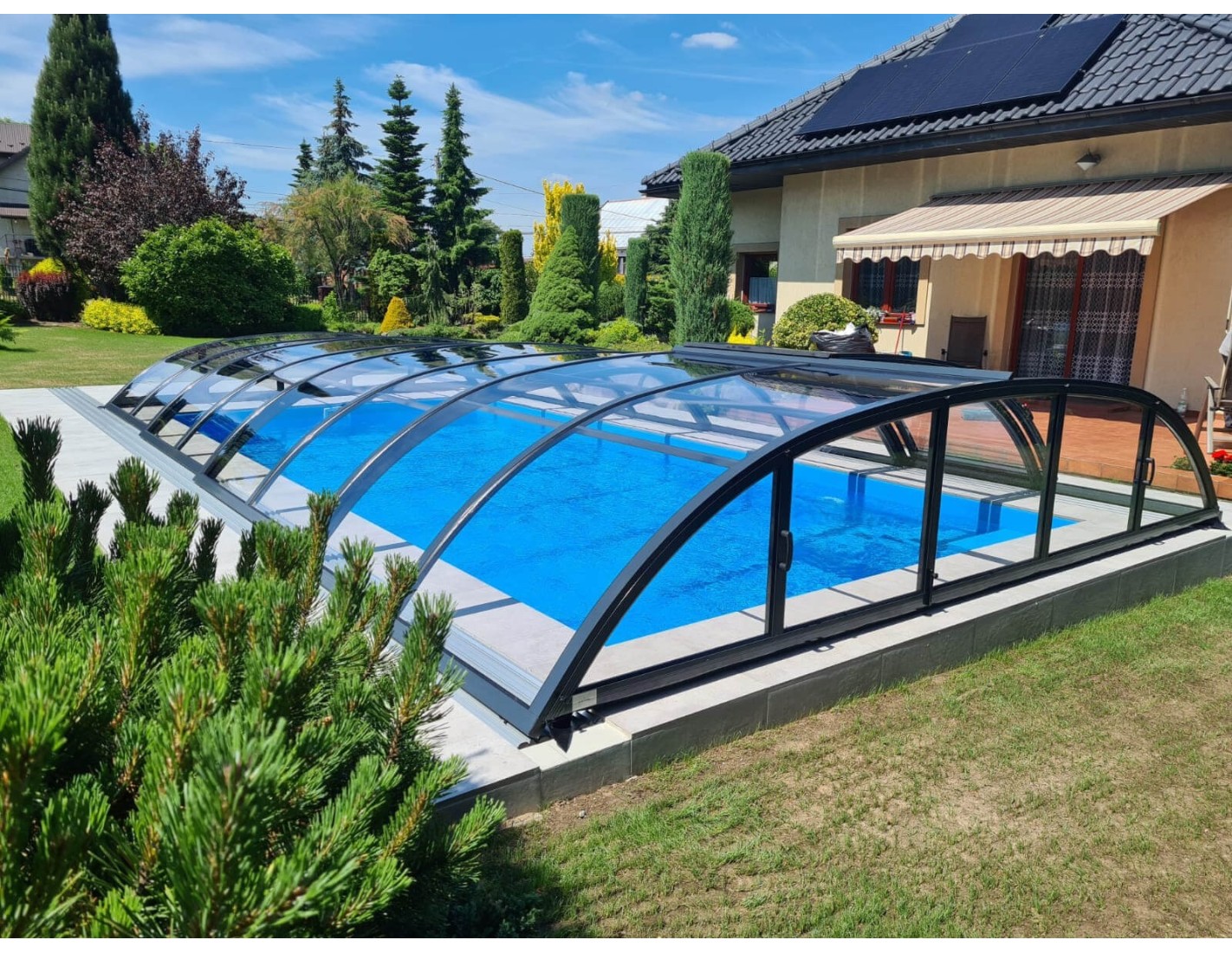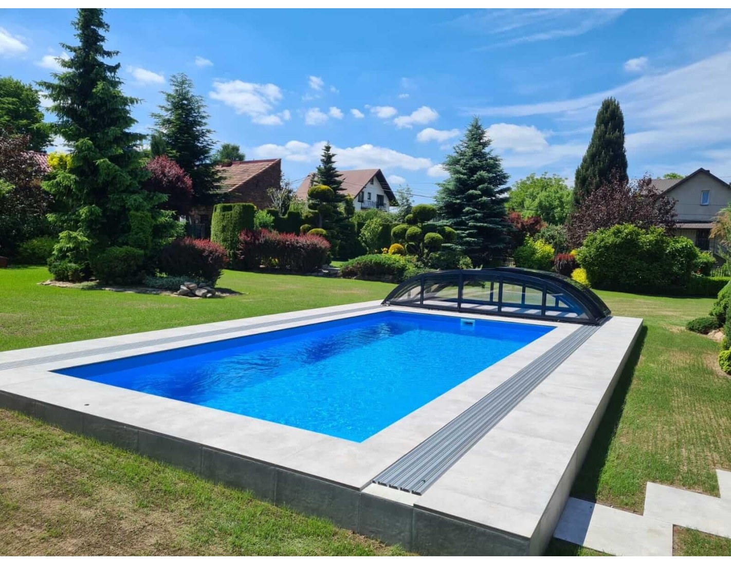 Gracias a los cobertores [feature_value:93] podrás disfrutar de la piscina exterior de tu jardín durante varios meses al año. Si el agua se calienta adicionalmente, puede durar desde finales de primavera hasta principios de otoño. ¡La temperatura del agua en una piscina cubierta es varios grados más alta! Una piscina en el jardín es un lugar lleno de alegría, relajación, perfecto para encuentros con amigos. ¡Haz que la temporada de baño dure más!