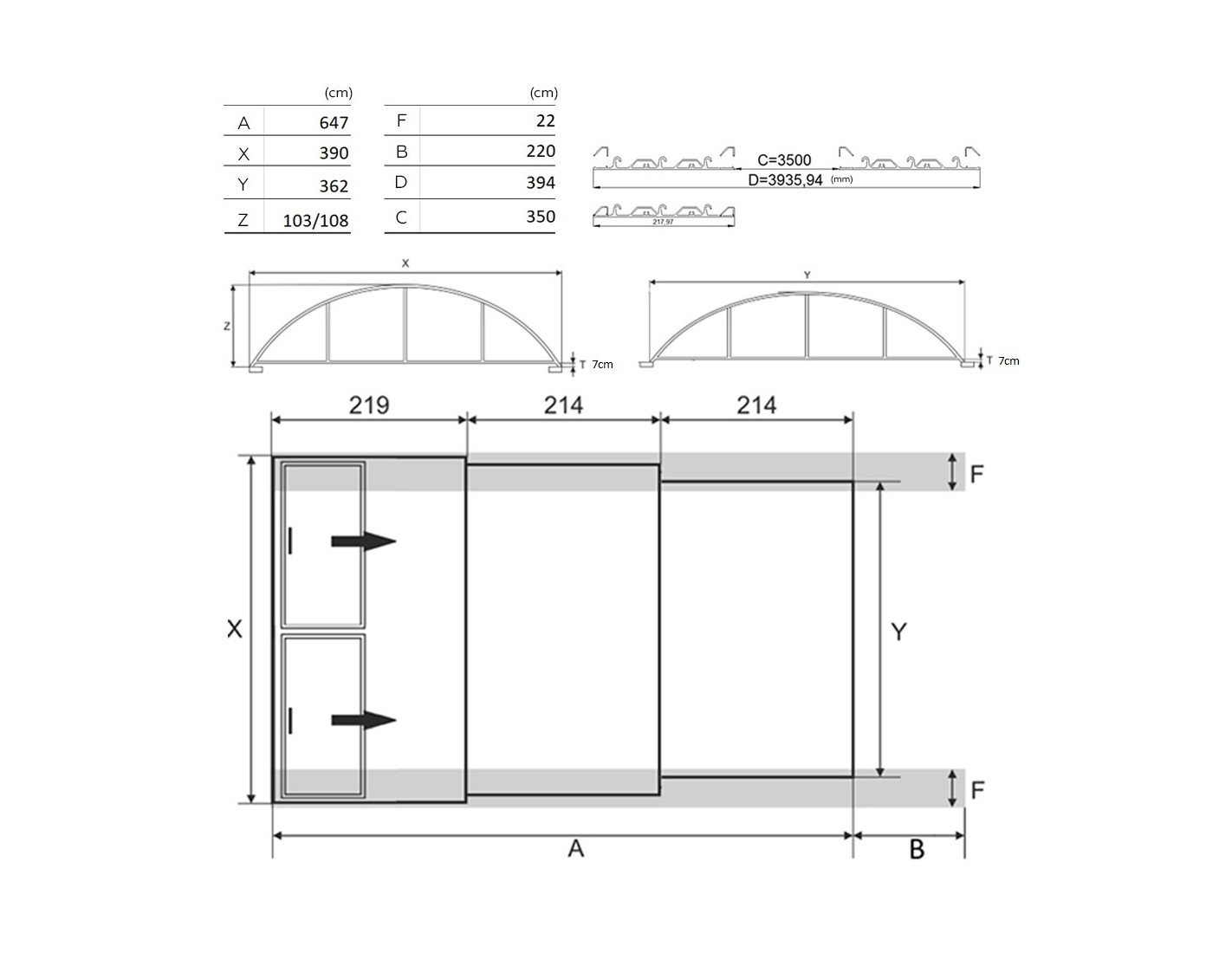 - Rieles de largura del cobertor + Extensión 2.2 m