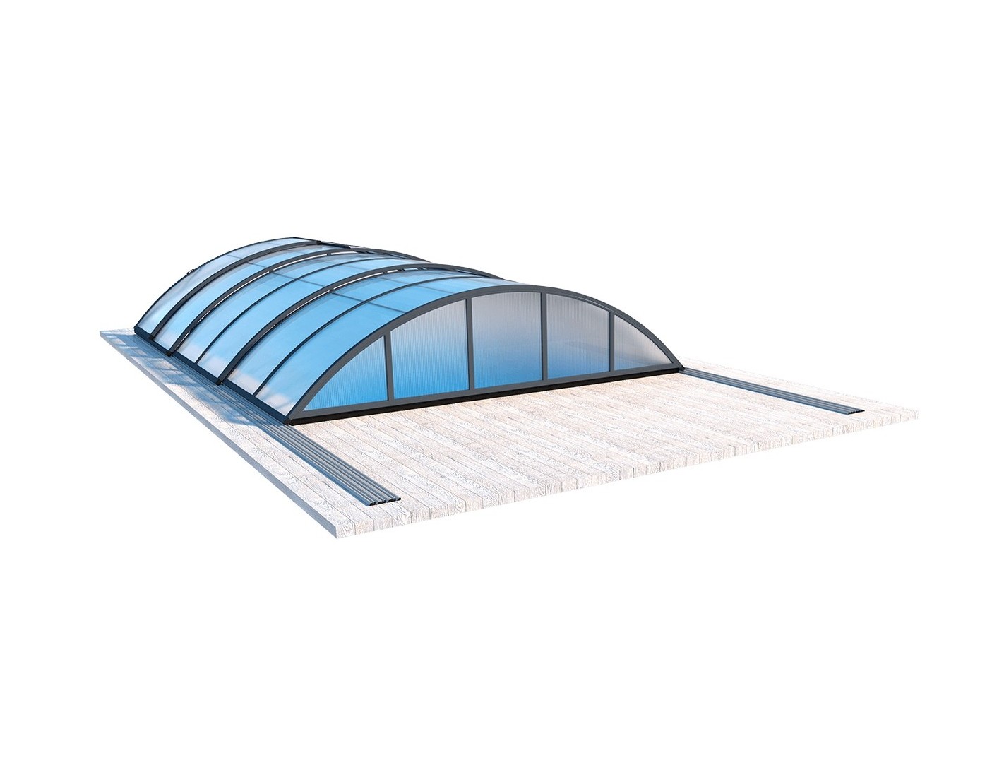 El material utilizado para crear los cobertores de piscina ofrecidos es Policarbonato celular de 8 mm, que se caracteriza por su excelente aislamiento. Protege contra la pérdida de calor, lo que se traduce en un menor consumo de energía necesaria para mantener la temperatura adecuada del agua. Además, se caracteriza por su resistencia a las cargas de nieve y hielo.