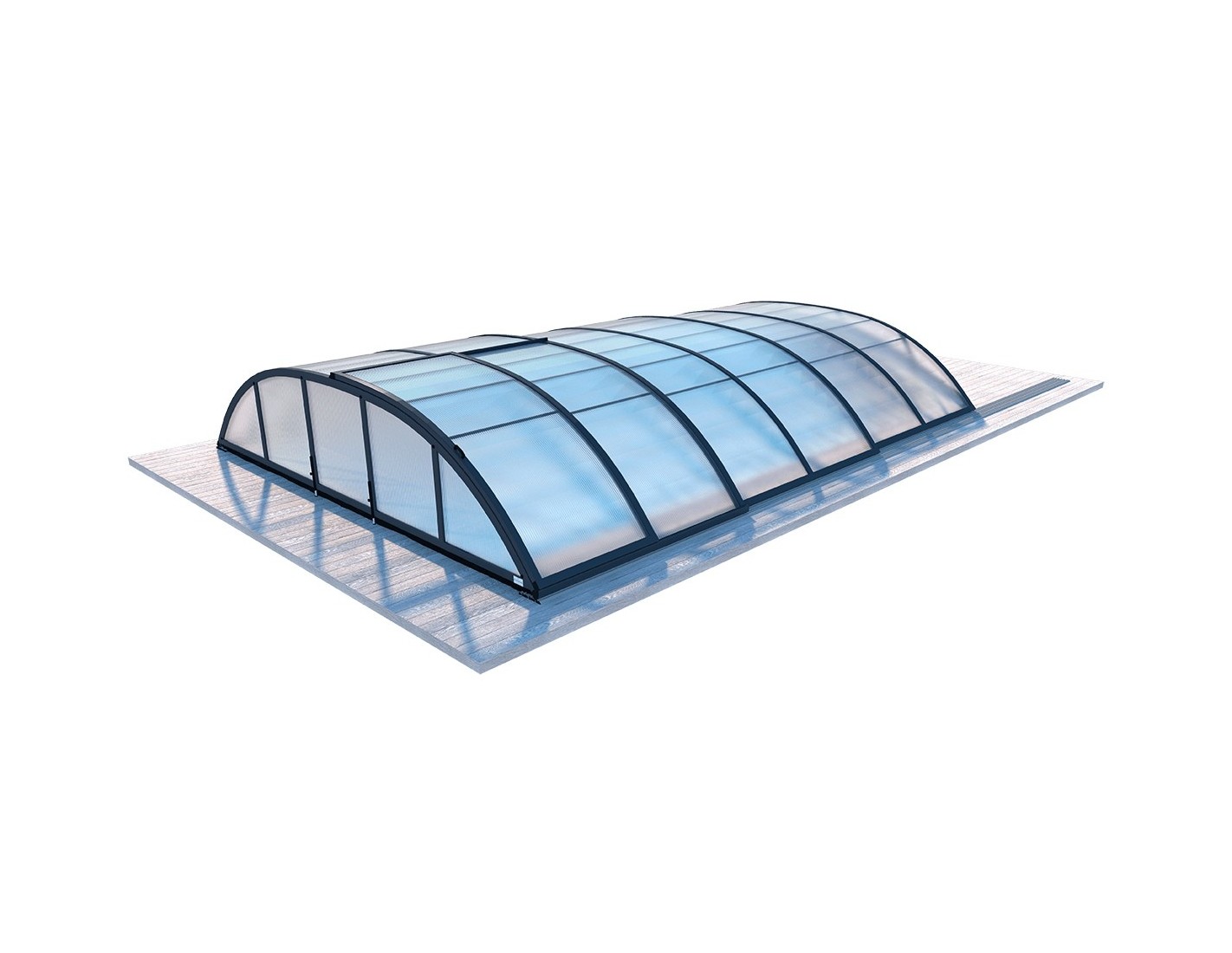 El material utilizado para crear los cobertores de piscina ofrecidos es Policarbonato celular de 8 mm, que se caracteriza por su excelente aislamiento. Protege contra la pérdida de calor, lo que se traduce en un menor consumo de energía necesaria para mantener la temperatura adecuada del agua. Además, se caracteriza por su resistencia a las cargas de nieve y hielo.