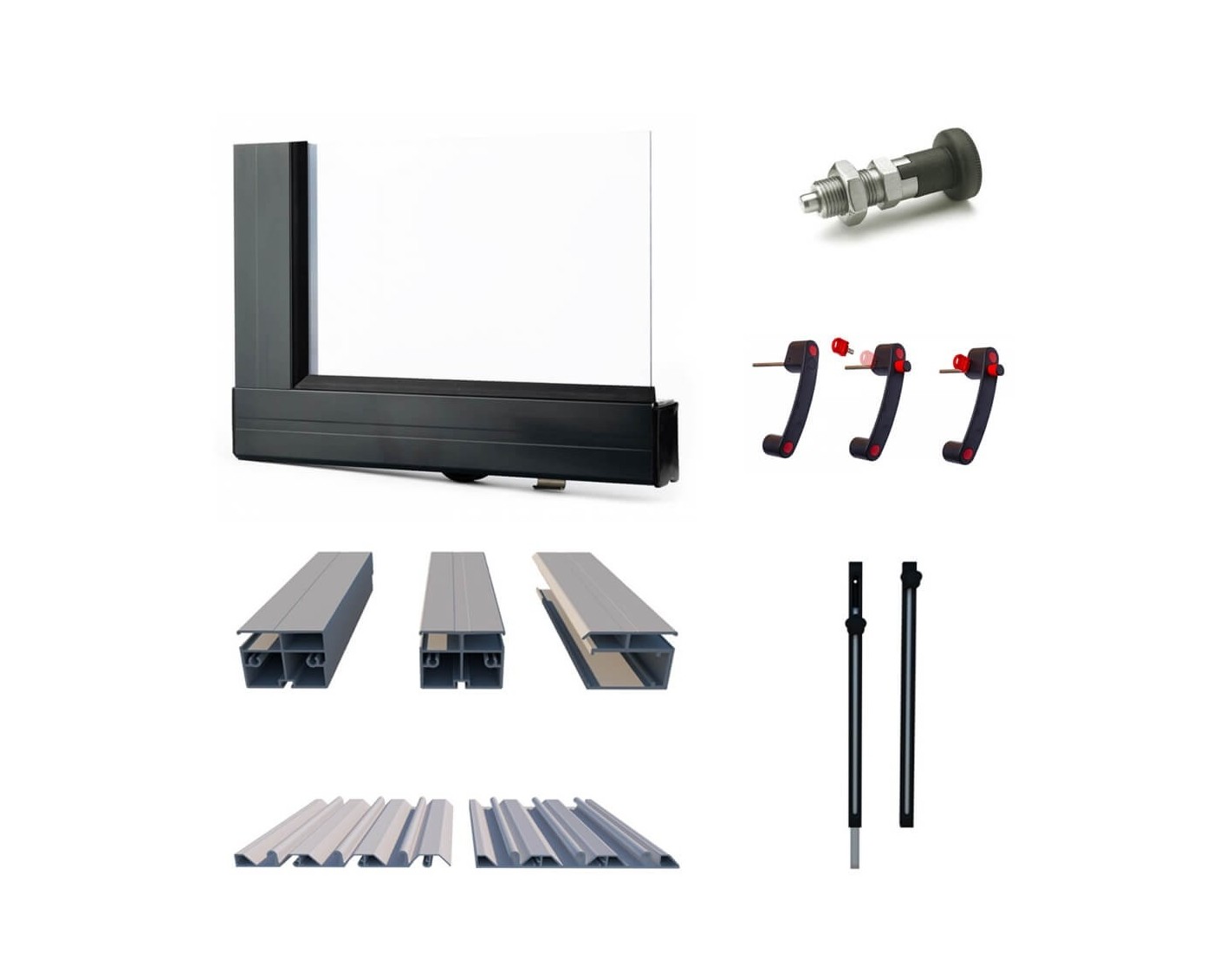 - Perfiles de aluminio con recubrimiento en polvo de color Antracita RAL7016