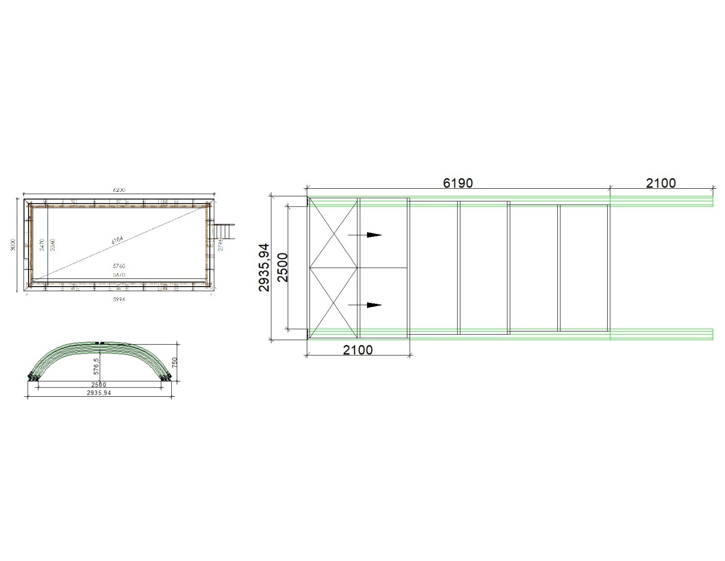 - Rieles de largura del cobertor + Extensión 2.1 m