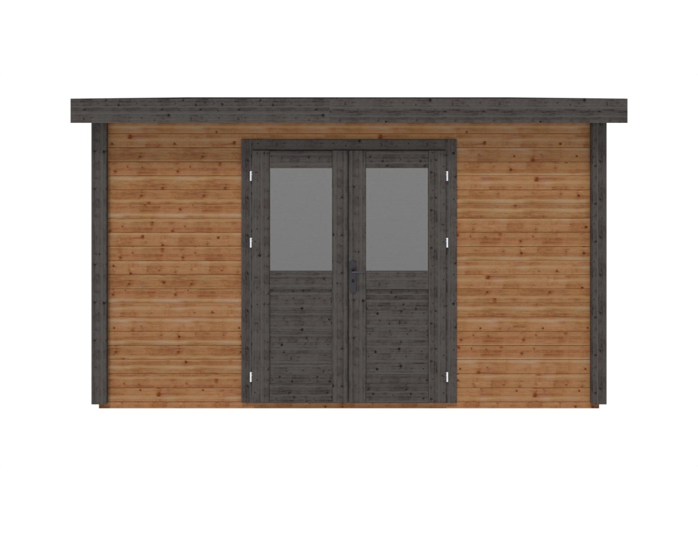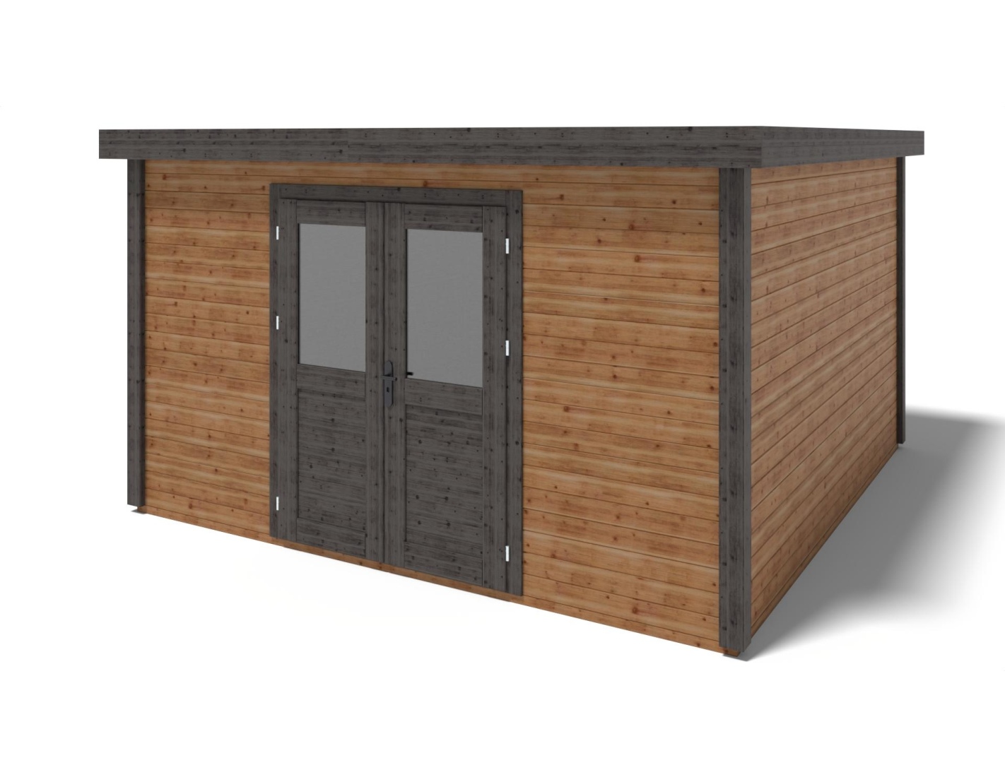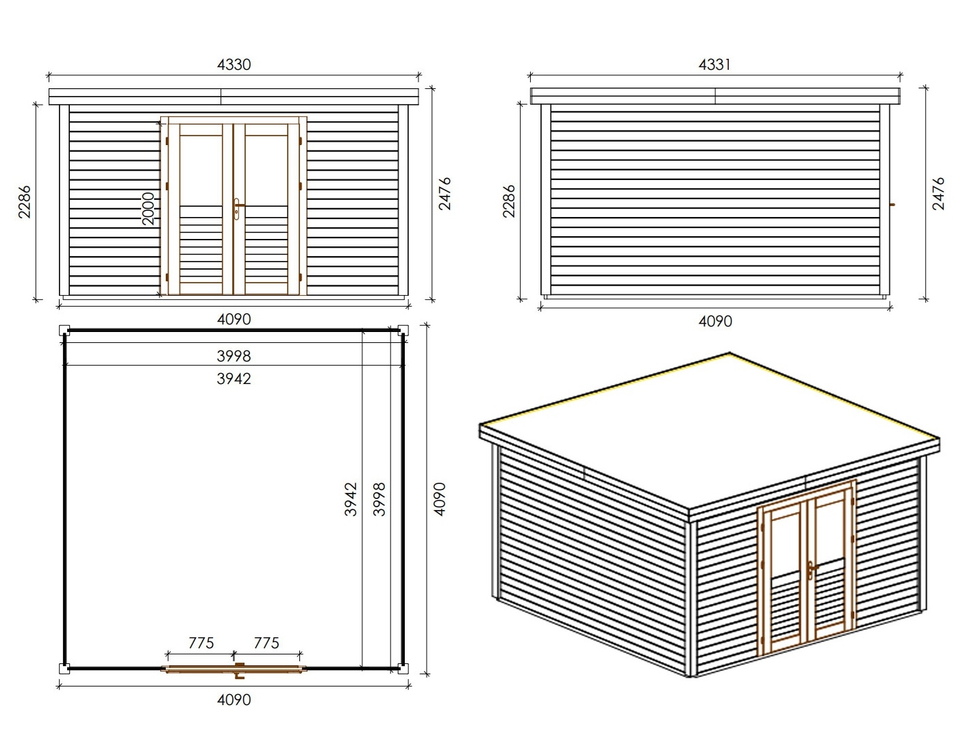 Caseta de madera para herramientas 000027 de superficie de 16.73 m2, ancho de 4.09 m, profundidad de 4.09 m y espesor de pared de 28 mm. La caseta es fácil de montar, las instrucciones de montaje están incluidas.