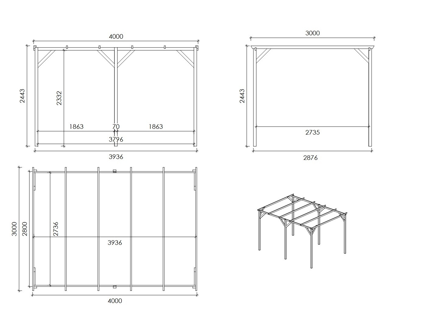 Cochera CAR13 de ancho de 3 m, produndidad de 4 m y altura de entrada de m puede utilizarse como tejado para una plaza de aparcamiento o, por ejemplo, como tejado de terraza. El montaje de la cochera, gracias a las instrucciones adjuntas al producto, no causa mayores problemas.