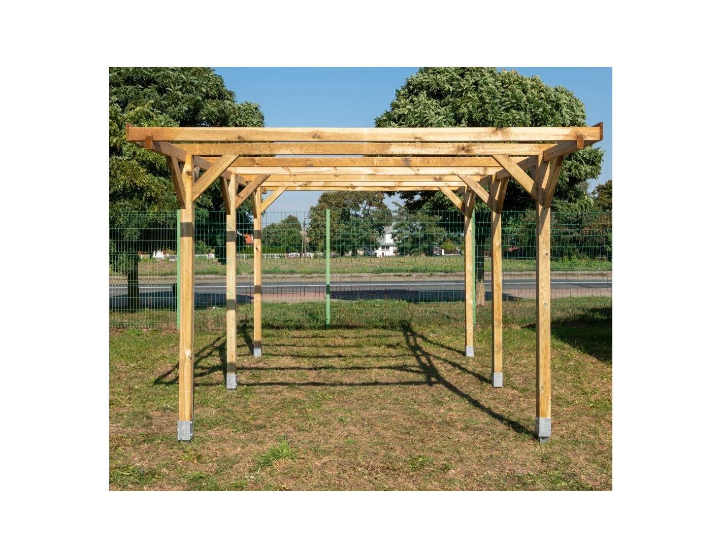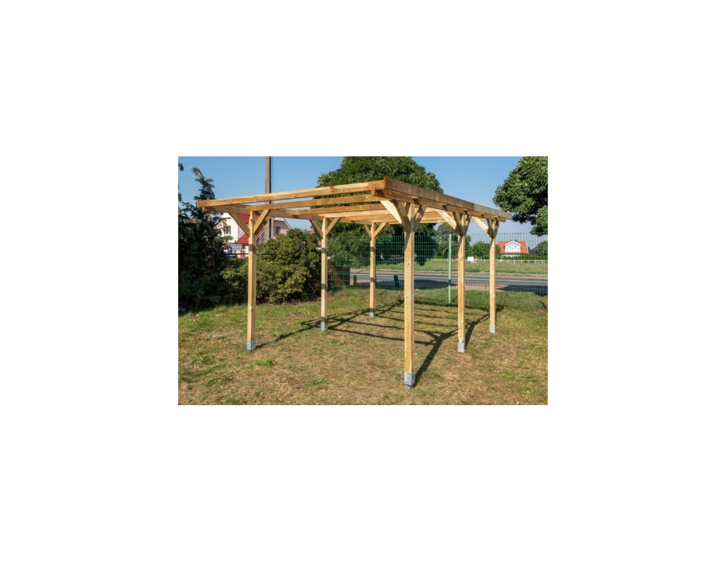 Cochera CAR16 de ancho de 3.04 m, produndidad de 5.12 m y altura de entrada de 2.07 m puede utilizarse como tejado para una plaza de aparcamiento o, por ejemplo, como tejado de terraza. El montaje de la cochera, gracias a las instrucciones adjuntas al producto, no causa mayores problemas.