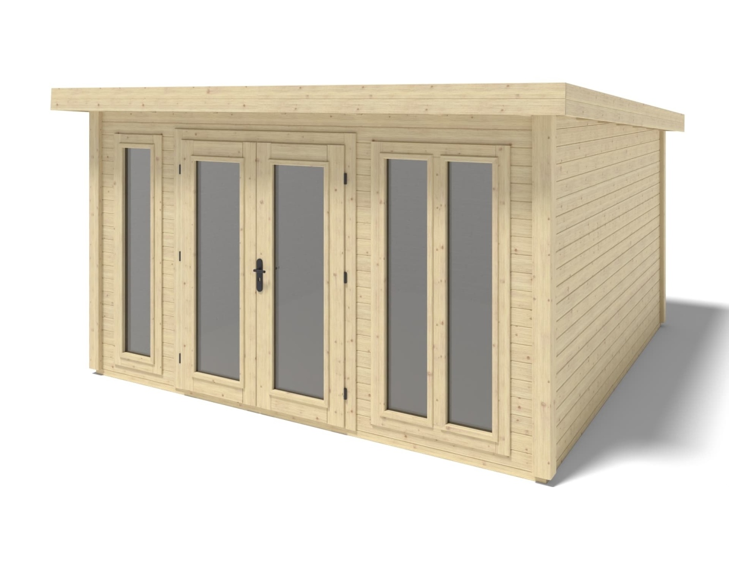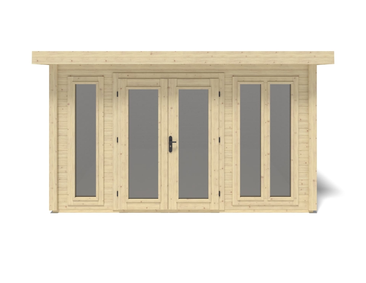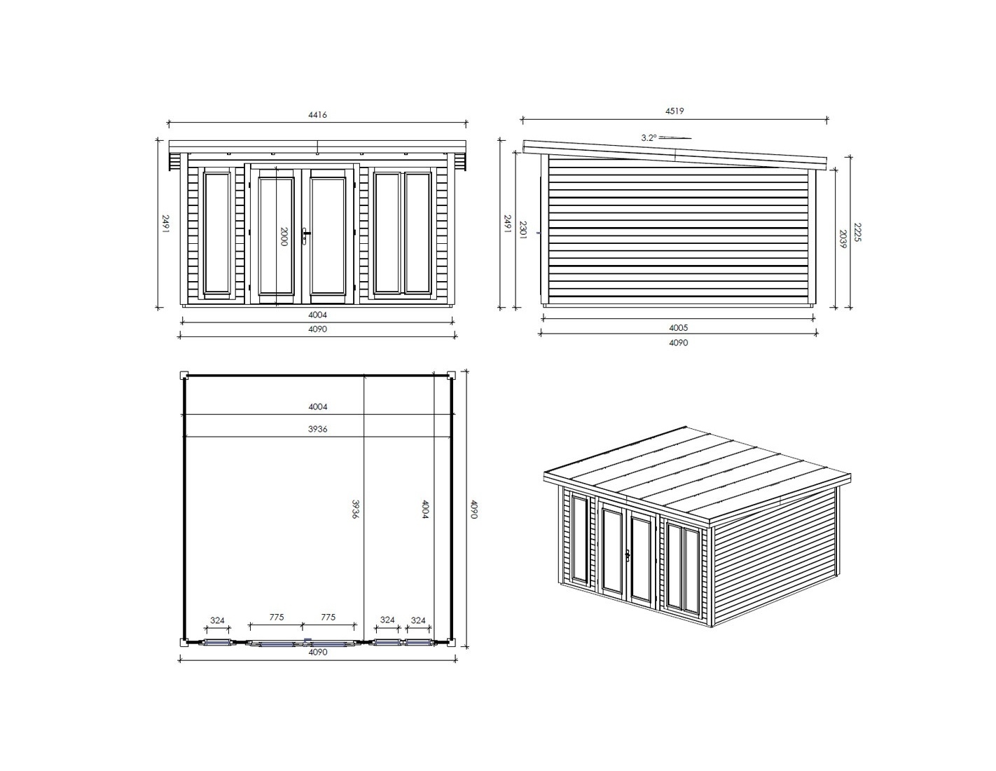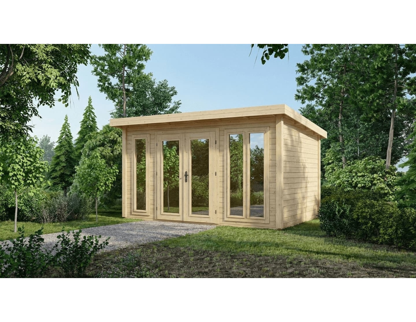 Caseta de madera para herramientas 000009 de superficie de 12 m2, ancho de 4,04 m, profundidad de 4,09 m y espesor de pared de 34 mm. La caseta es fácil de montar, las instrucciones de montaje están incluidas.